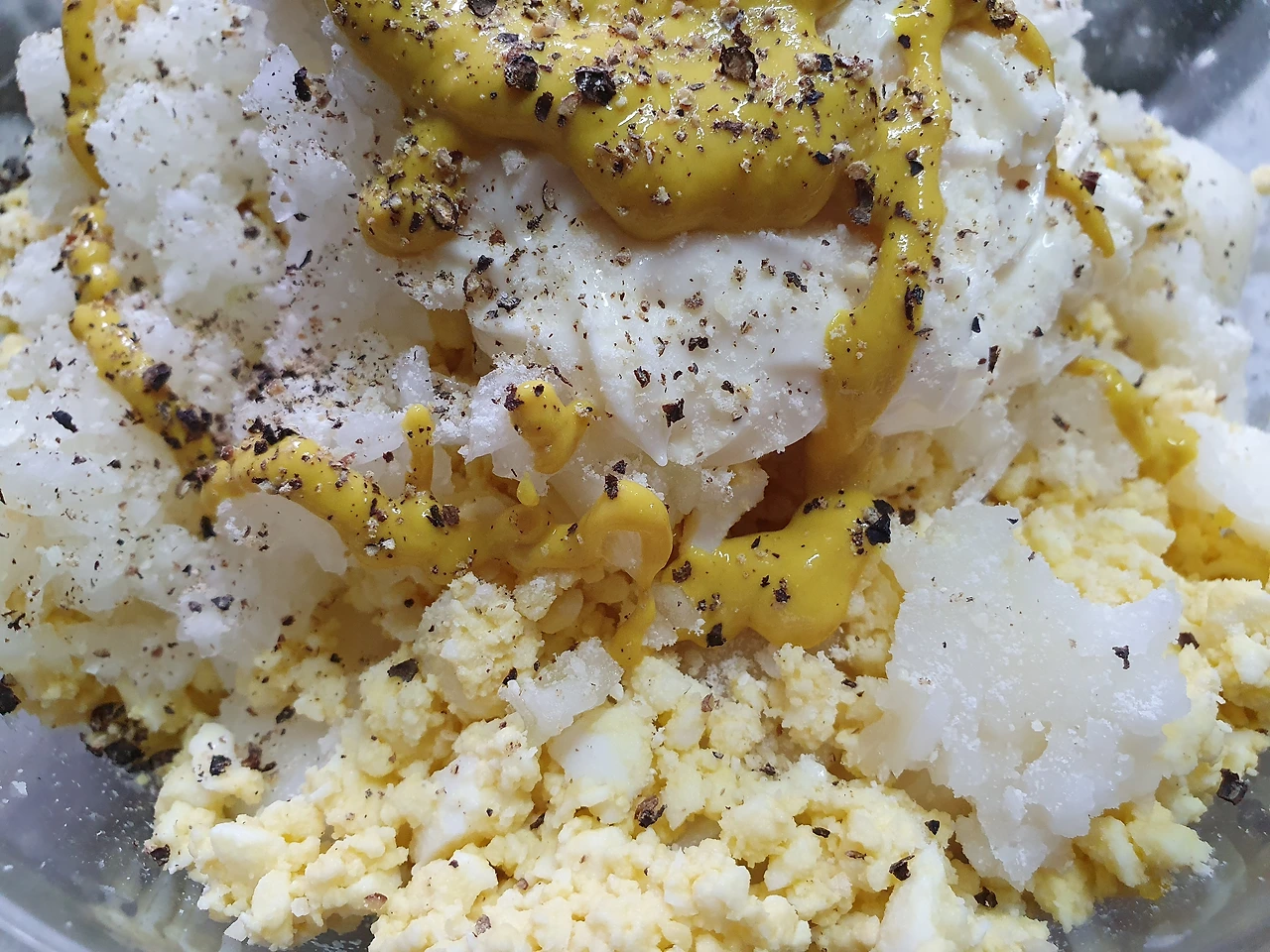 재료(모닝 빵 10개 기준) 모닝 빵:10개 감자: 5개 계란: 4개 마요네즈: 5큰술 머스터드소스: 3큰술 소금, 통후추 설탕ㅡ선택 :입맛대로