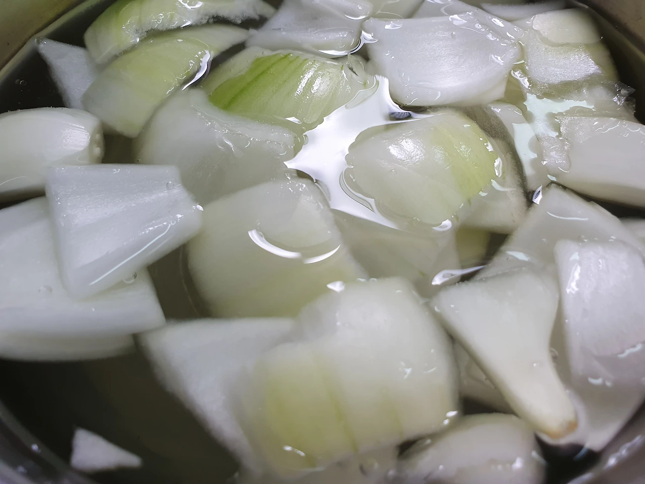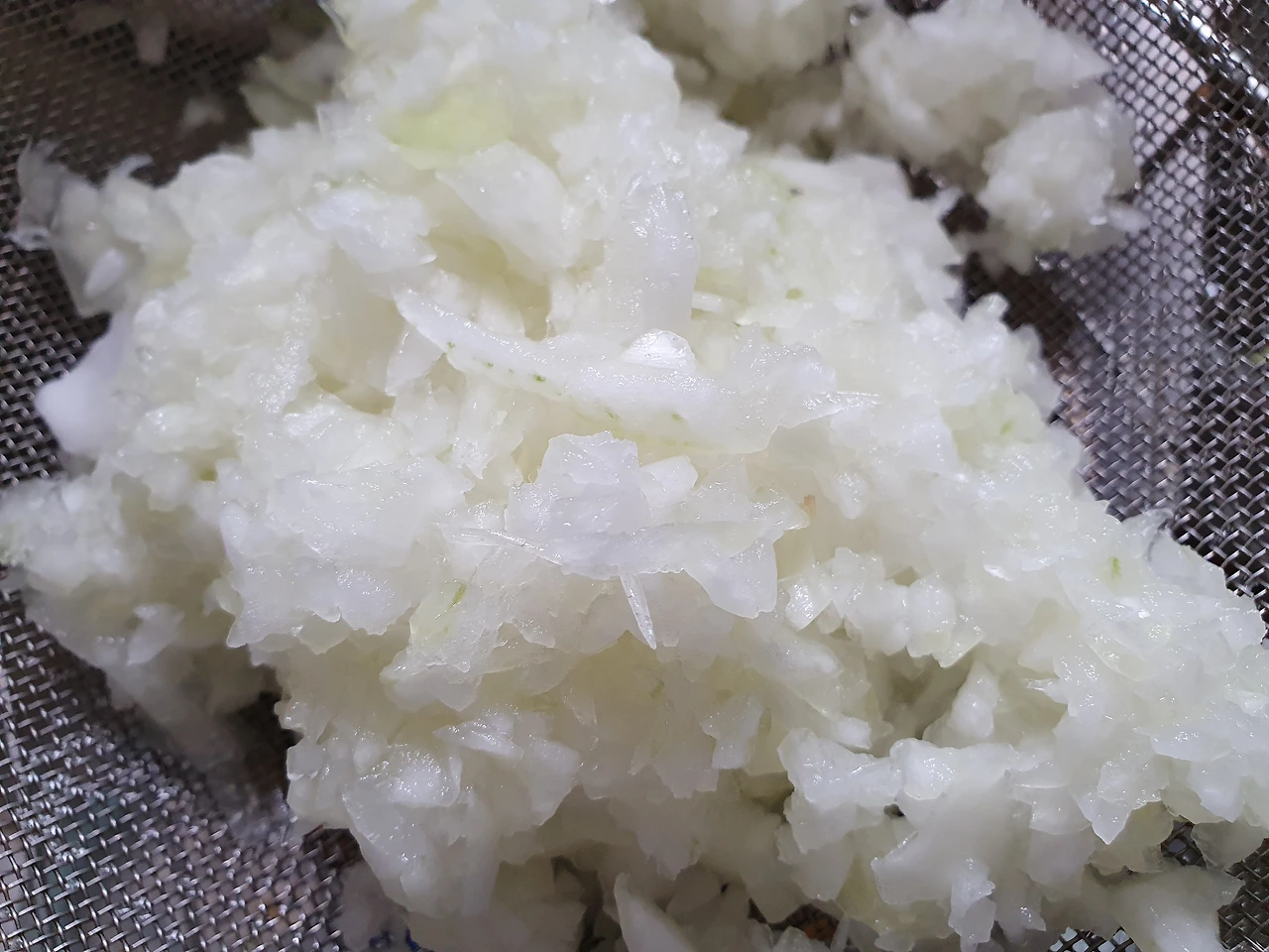 매운 맛을 뺀 양파는 잘게 썰거나 다져서 물기를 쪽~~~