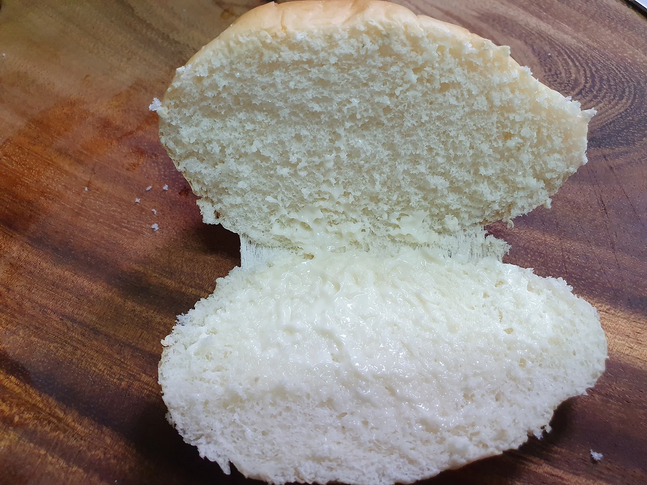 모닝 빵의 끝을 쬐끔 남기고 반을 잘라서~~~