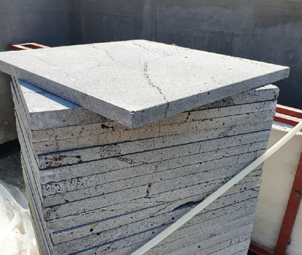 현무암: 지표 가까이에서 용암이 빠르게 굳어진 암석으로 표면은 거칠거칠하고 겉 표면에 크고 작은 구멍이 있다.