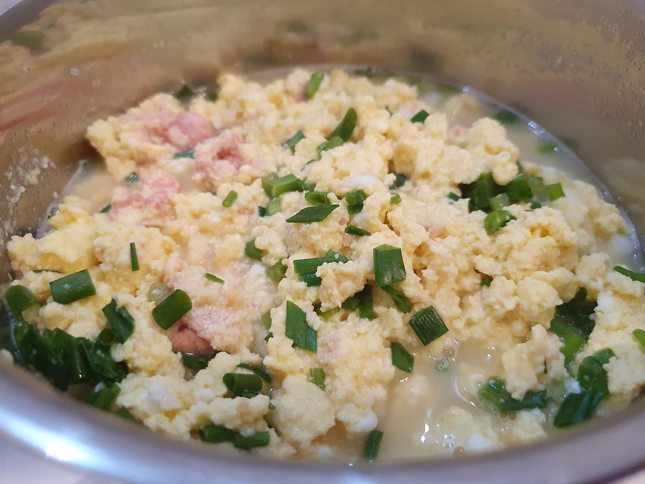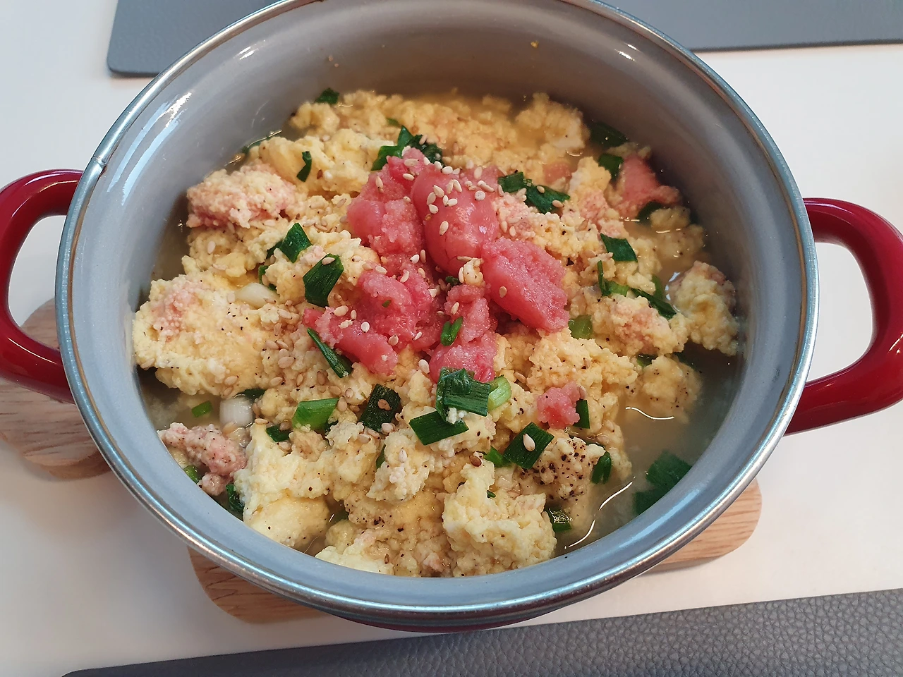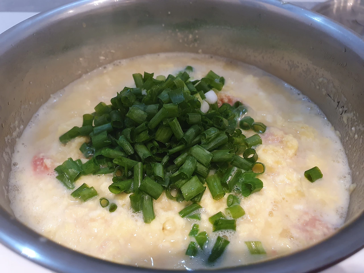 재료 (3인분)계란- 6개명란 - 4개물- 1컵 반참기름 - 1큰술맛술- 2큰술쪽파 - 3개후추, 깨