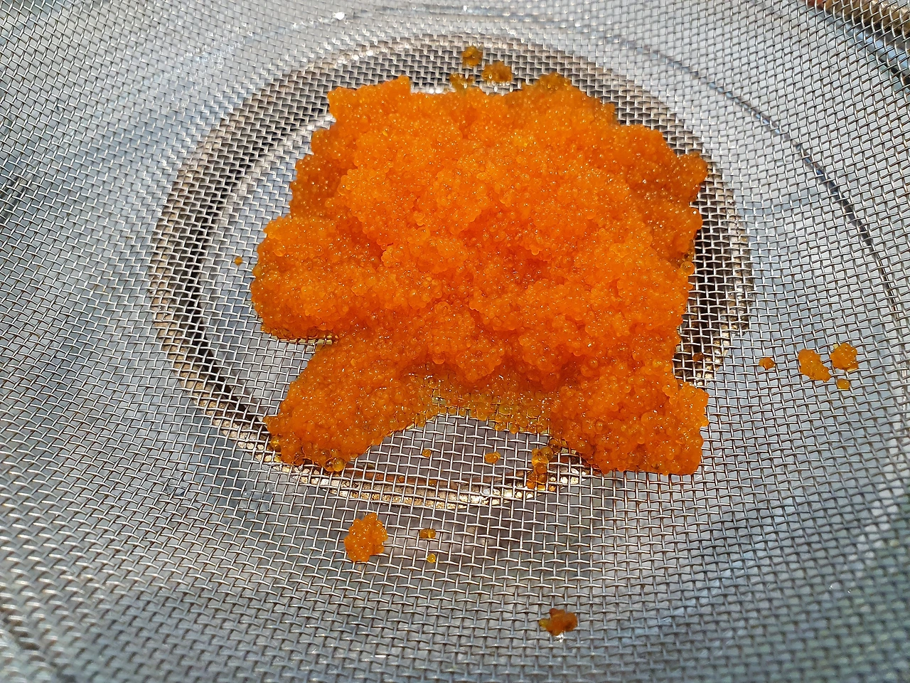 날치가 지나가는 바다 길목에 벼 짚단 등을 뿌려 놓으면 날치가 수초로 착각하여 알을 뿌리고 지나가는데 이것을 수거해서 세척과 조미 등을 한 것을 말한다.