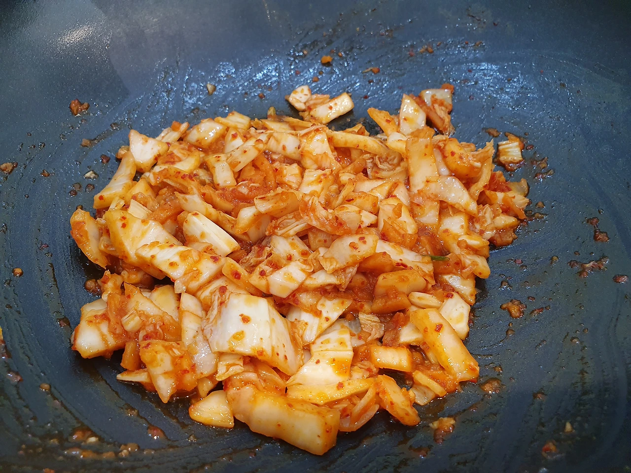 (김치볶음 양념)- 참기름 1작은술, 설탕 1작은술