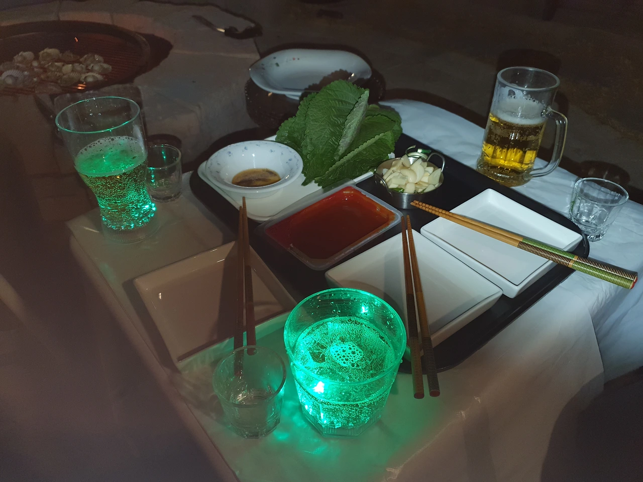 재료홍가리비- 3kg초고추장참기름장- 참기름, 소금, 후추상추, 꺳잎, 마늘, 청양고추라면-선택