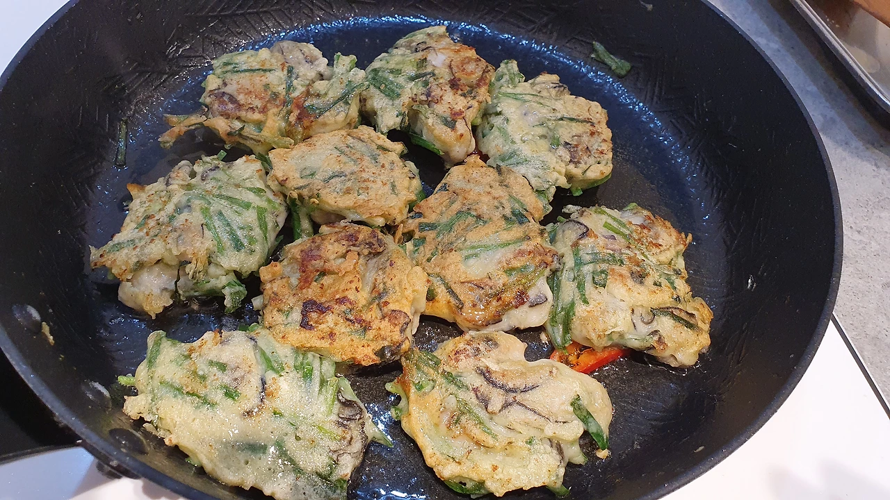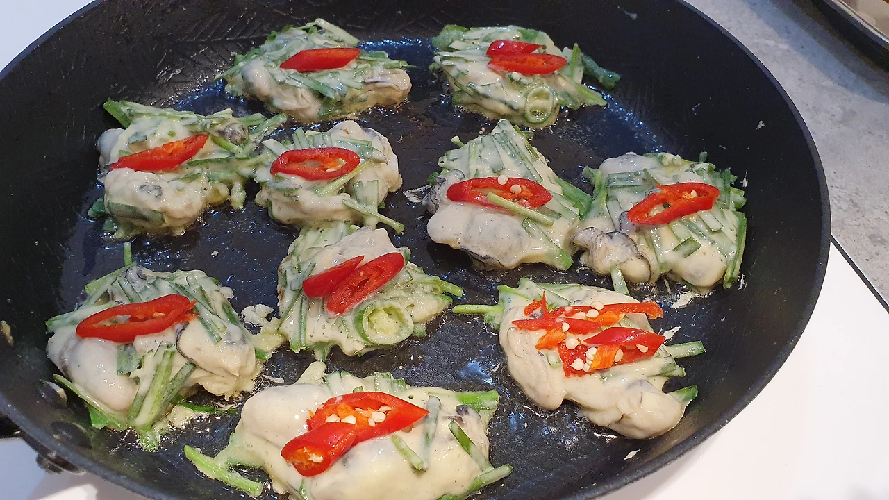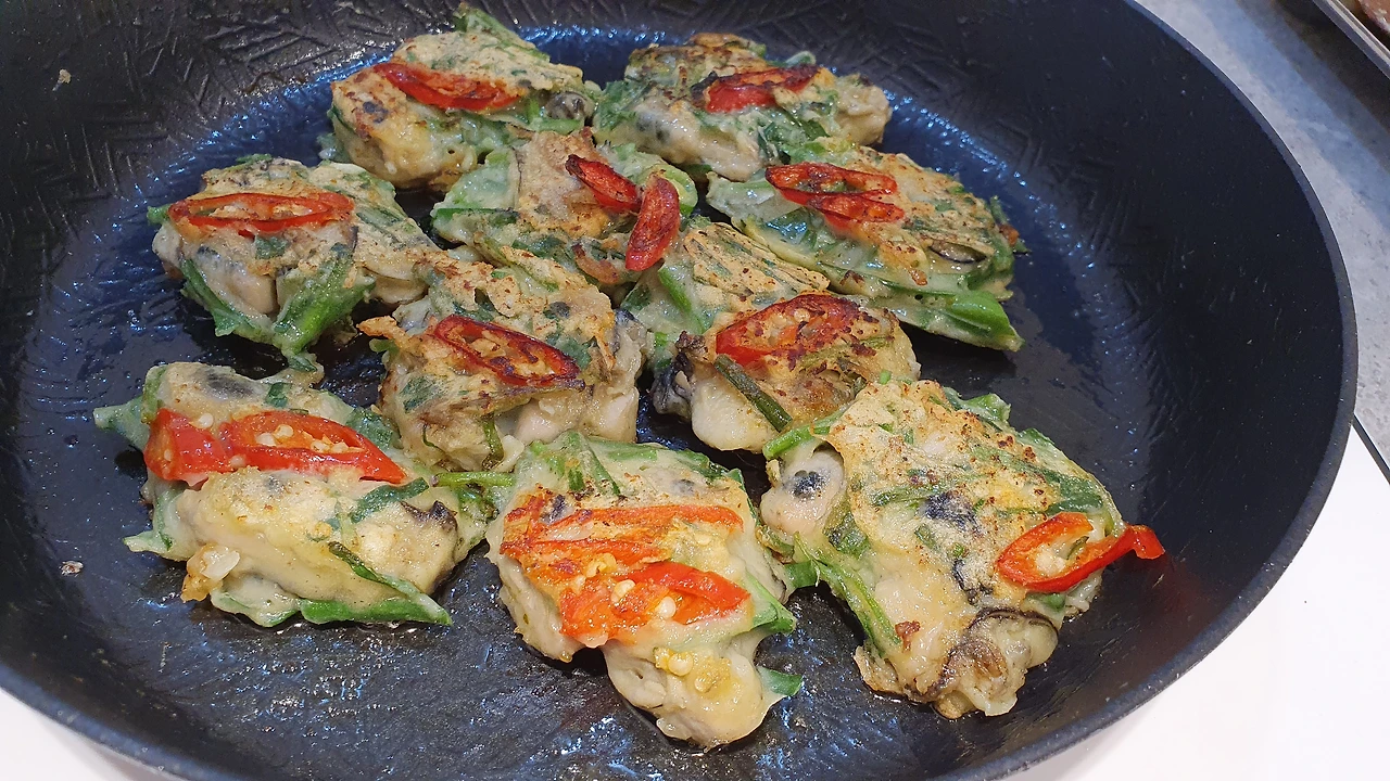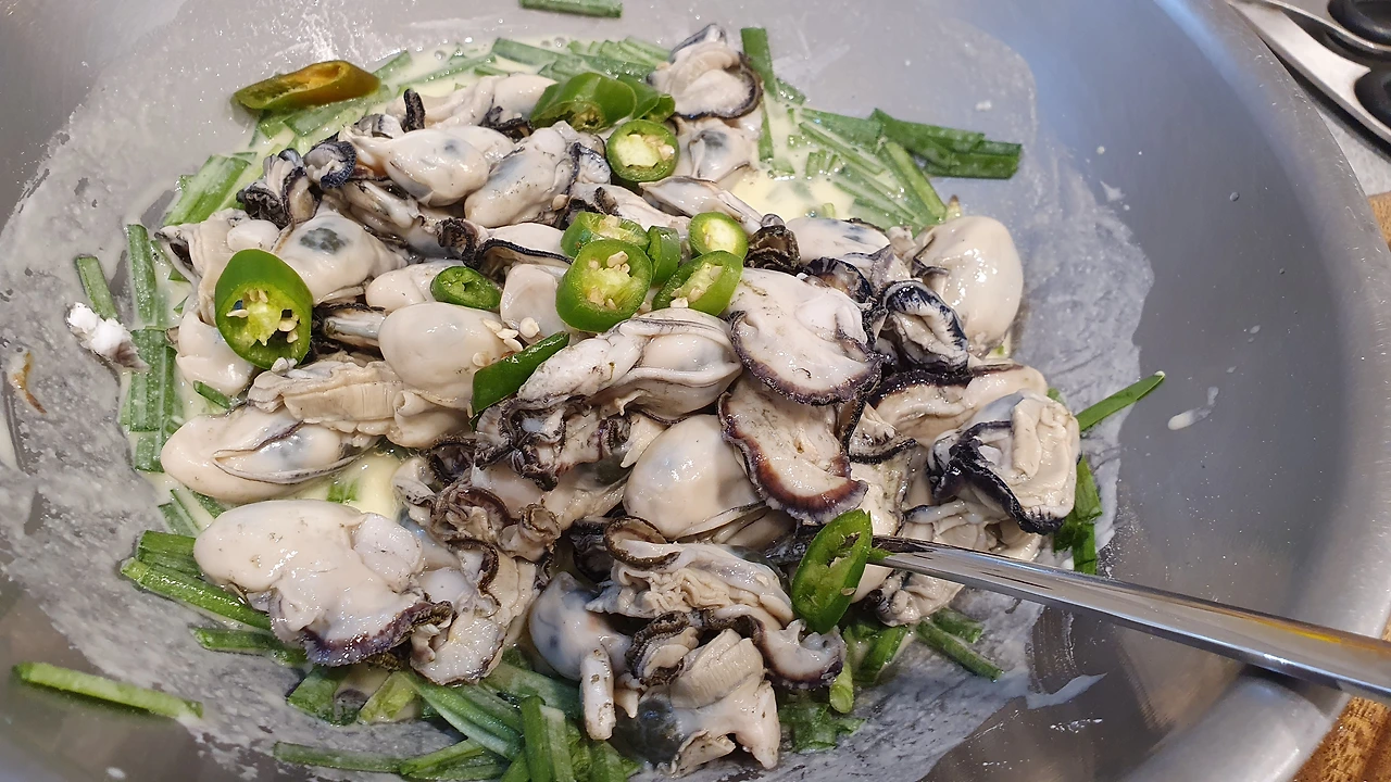 스테미너에 좋다는 아연을 비롯하여 비타민 미네랄을 듬뿍 함유하고 있는 영양 식재료인 굴과 찰떡궁합인 부추를 곁들인 굴 부추전이 제철 겨울에 빠질 수가 없다.