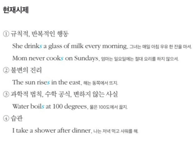 주어가 ㅡ 3인칭수 ㅡ 단수시제 ㅡ 현재일 때,동사의 원형에 s/ es를 붙임!ㅡㅡㅡㅡㅡㅡㅡㅡㅡㅡㅡㅡㅡㅡㅡㅡㅡ내가 걸으면?I walk.그러나, 스페셜 3인칭 단수인 그 여자가 걸으면?She walks.내가 가면?I go.그 여자가 가면,She goes.