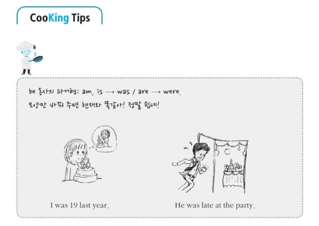 과거: I was happy. (난 행복했어.)현재: I am happy. (난 행복해.)과거: I will be happy. (난 행복할 거야.)