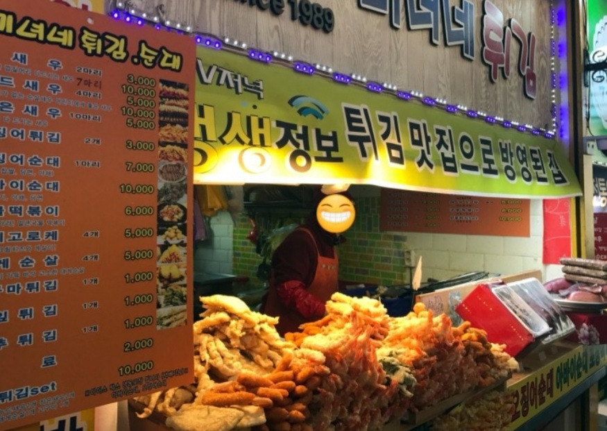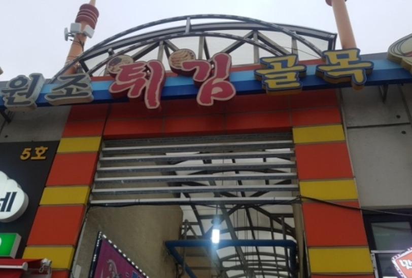 (재정비된 튀김골목 ㅡ옛날 시장골목 운치는 덜하다)
