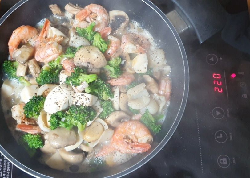 새우 20마리, 만 오천 원, 관자, 구천원 브로콜리, 이천원 새송이버섯, 이천 원 양송이버섯, 이천 원 ㅡㅡㅡㅡㅡㅡㅡㅡㅡ 해봐야 삼만 원