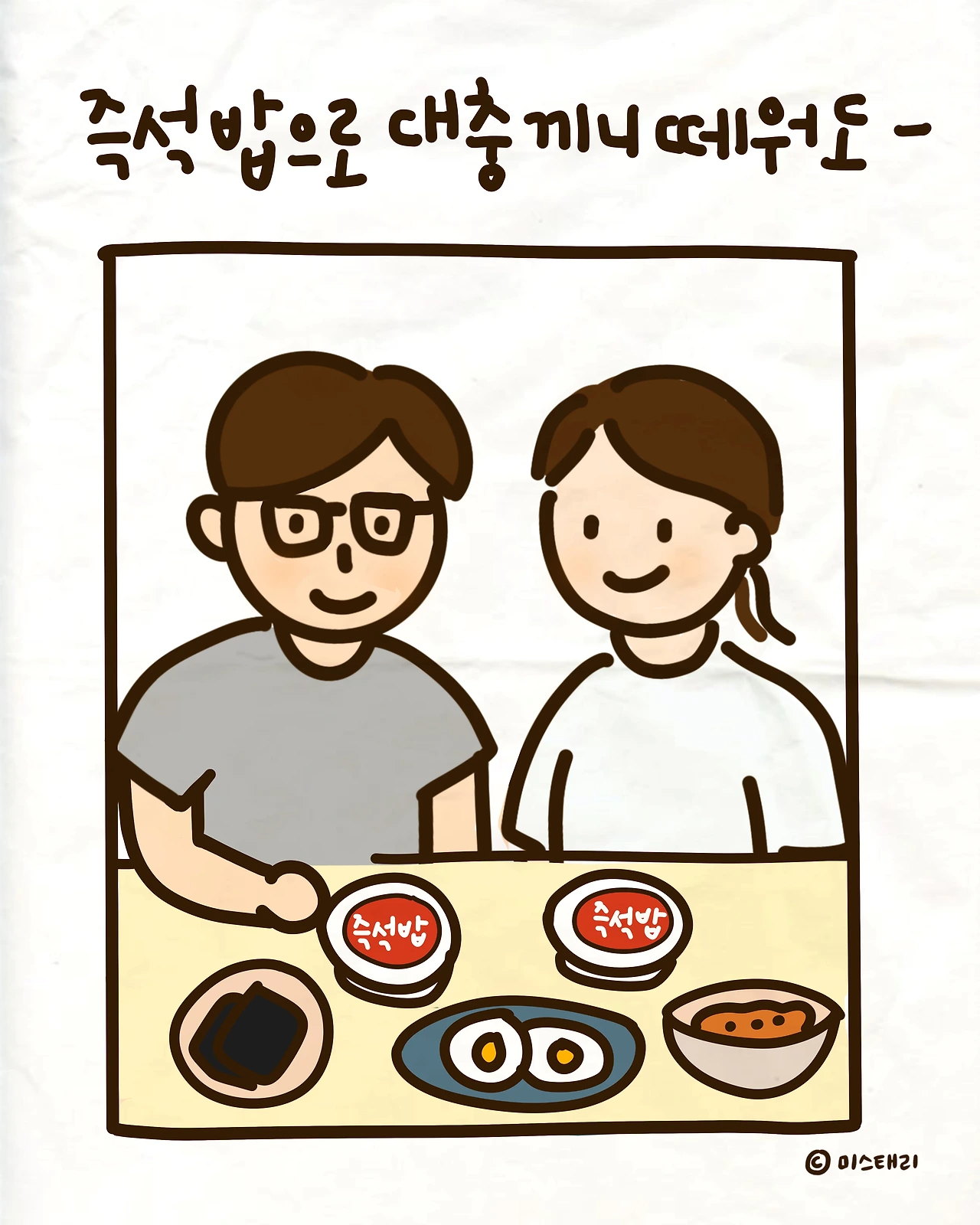 갓 지은 밥을 차려내고 싶지만, 결국 전자레인지 ‘띵’ 소리와 함께 즉석밥을 꺼낼 때가 많다. 그럴 때면 미안한 마음이 스치지만, 둘이 마주 앉아 숟가락을 드는 순간은 언제나 따뜻하다. 반찬이 몇 가지 되지 않아도, 맛있게 먹어주는 서로의 마음이 밥상을 채운다.