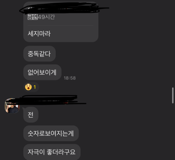 "나 담배 끊었다. 금연 25시간 째다. 진짜 아까 너무 피고 싶더라. 미친놈처럼 집안 모든 곳을 뒤졌는데 아무것도 없더라. 덕분에 아직까지 참는 중."