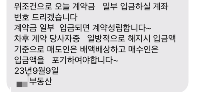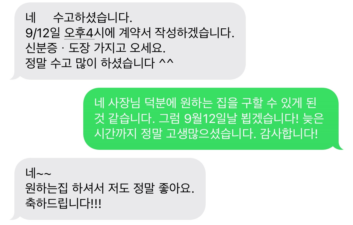 “안녕하세요 사장님. 제가 고민했던 곳 집주인한테 지금 바로 계약한다고 해주시고 계좌번호 알려주세요. 지금 바로 가계약금 넣을게요”