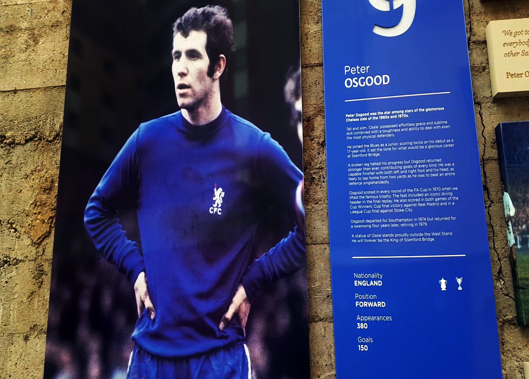 오스굿은 1964년 첼시에서 데뷔해 1974년까지 스탬포드 브리지의 간판스타로 맹활약했던 공격수였다. 오스굿이 활약하던 시기는 맨체스터 유나이티드·리버풀 등 절대 강자로 군림하던 때라 첼시가 지금처럼 강팀으로 평가받진 못했었다. 그래도 1969-1970시즌 FA컵 우승, 1970-1971 UEFA 컵 위너스컵 정상 등극 등 꽤 굵직한 성과를 내기도 했었다.