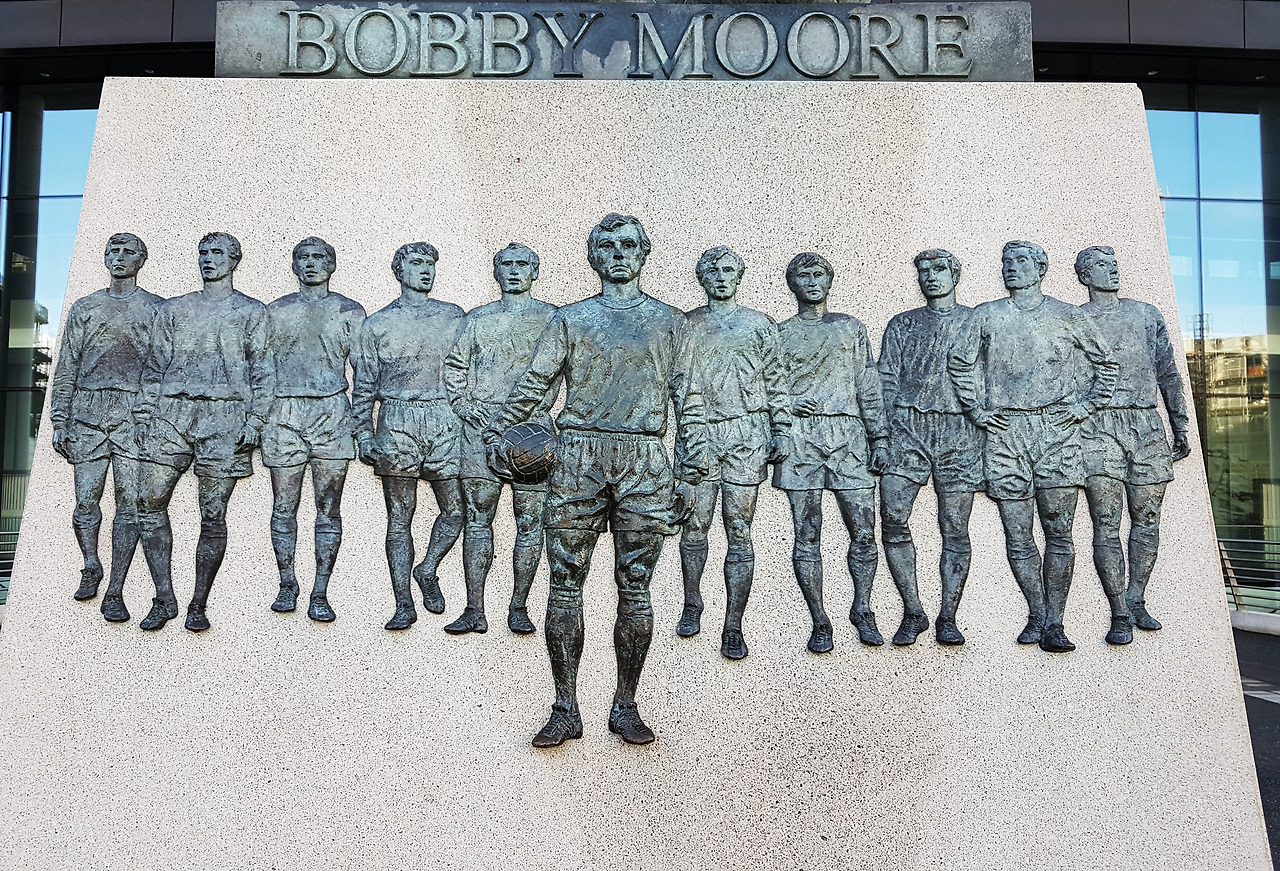 이 동상은 웸블리의 그것에 비교해 전혀 부족하지 않은 멋진 작품인데, 바로 1966 잉글랜드 월드컵 우승 당시 웨스트햄 선수였던 무어·제프 허스트·마틴 피터스 그리고 에버턴에 소속되었던 레이 윌슨이 주인공이다. 이중에서도 가장 돋보이는 이가 또 무어다. 1966 잉글랜드 월드컵 우승 직후 선수들의 무등을 타고 줄리메컵을 높이 든 무어의 모습을 담은 사진은 월드컵 역사상 가장 유명한 장면이기도 한데, 바로 이를 모티브로 동상을 만들었다.