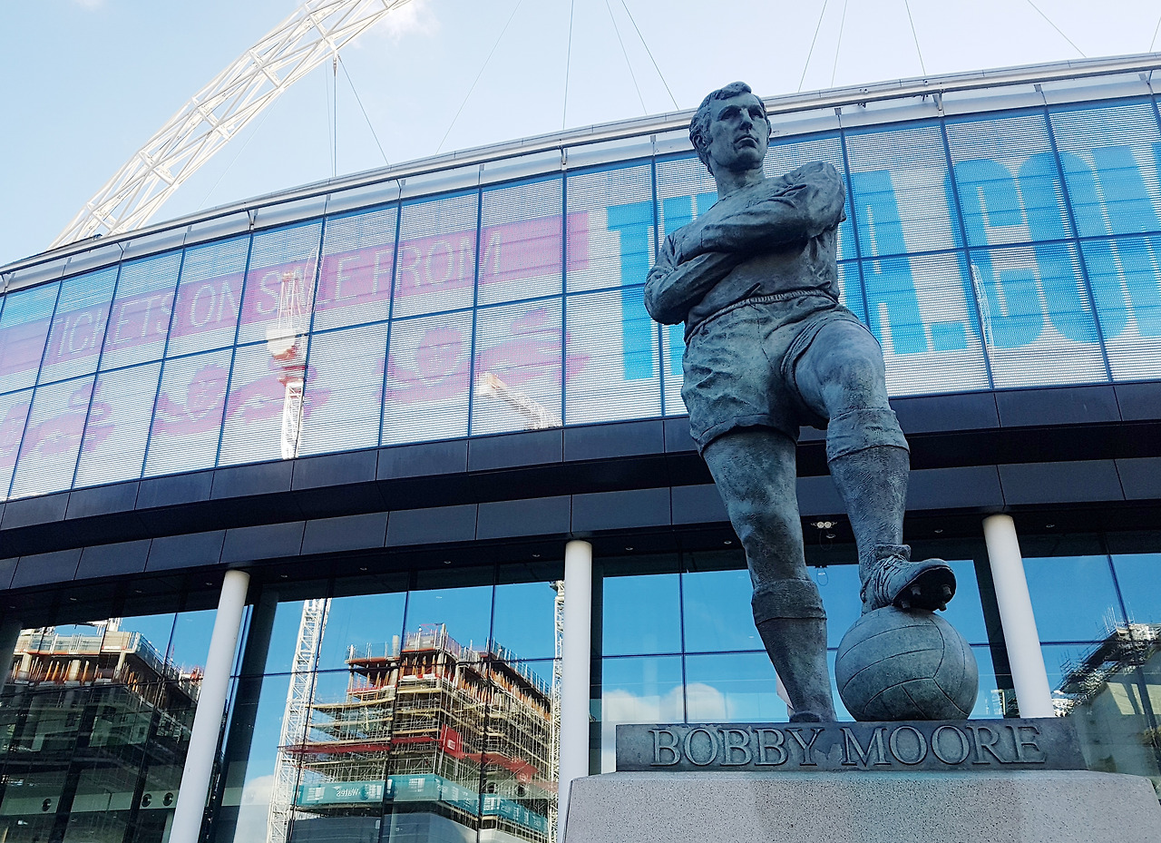 그중 최고로 꼽히는 선수는 바로 ‘축구 성지’ 웸블리 스타디움 앞에 늠름한 모습으로 축구팬들을 맞이하고 있는 동상의 주인공인 보비 무어다. 팔짱을 끼고 자신만만한 표정으로 발밑에 공을 두고 있는 이 동상을 지켜보면서 축구 선수가 아닌, 위인전에 나오는 위인 같은 느낌을 받았다. 과장을 좀 보태자면 광화문의 이순신 장군 동상과 엇비슷한 위엄을 느끼게 해주는 동상이다.