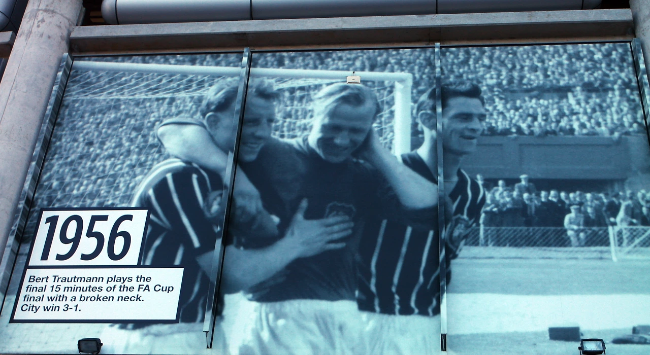 어쨌든 지금은 워낙 유명한 팀이 된 터라 인터넷을 통해서도 쉽게 알 수 있는 정보를 눈으로 목도하는 정도에 그쳤던 맨체스터 시티 둘러보기 도중 팬들이 입장하는 게이트 구석에 자리해 시선이 잘 닿지 않는 어느 골키퍼의 동상을 통해 바라던 스토리를 얻을 수 있었다. 영국 축구사상 가장 드라마틱한 축구 인생 스토리를 가진 인물, 1950년대 유럽 축구계에서 레프 야신과 더불어 세계 최고 골키퍼로 각광받던 독일 출신 버트 트라우트만을 다룬 동상이었다.