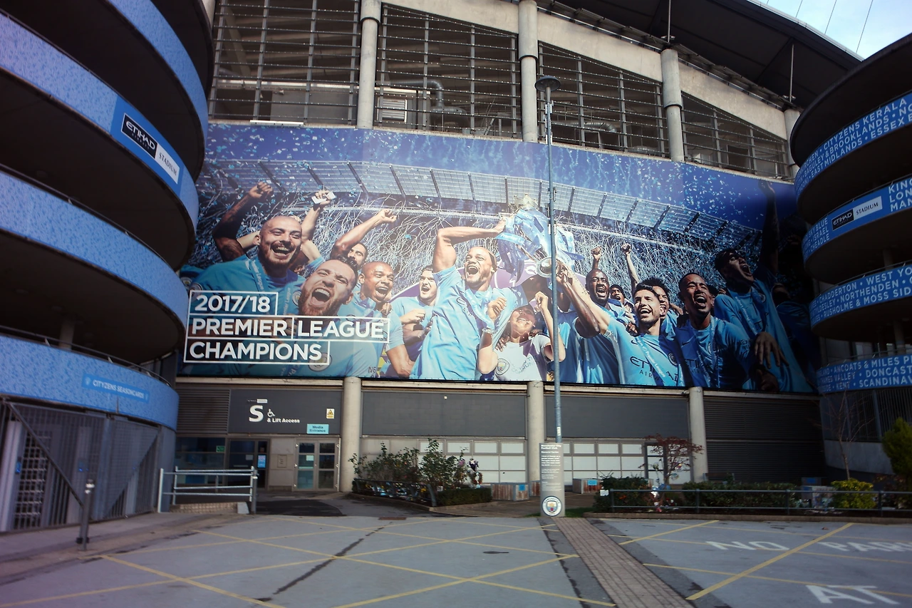 맨체스터 시티는 에티하드 스타디움 외벽에 세르히오 아게로·다비드 실바·케빈 더 브라위너와 같은 클럽의 핵심 선수들로 가득 치장해놓았다. 세계 최고 축구 지도자로 평가받는 ‘펩’ 과르디올라 감독에 대한 찬양심 가득한 표현물도 쉽게 볼 수 있다.