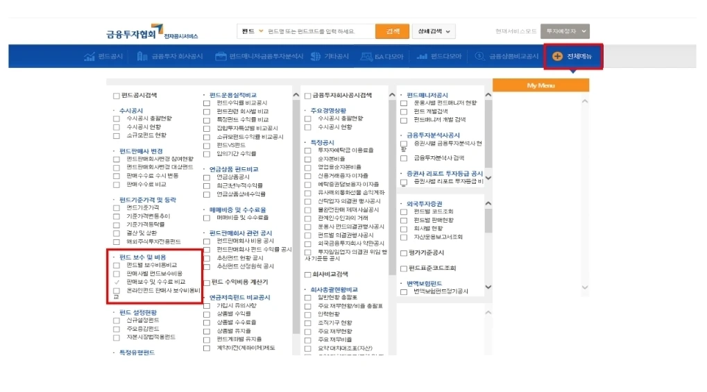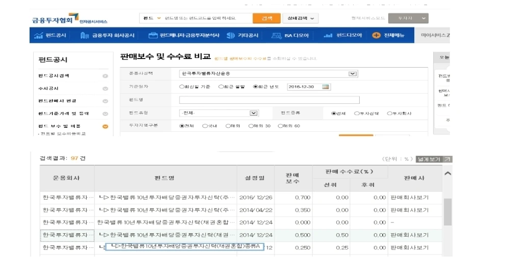 펀드 클래스가 동일하더라도 판매사별 ‘수수료’는 차이가 있을 수 있다. 좀 더 꼼꼼한 가입자라면 판매사(펀드 별 ‘수수료나 보수’ 비교를 해보는 것도 도움이 된다. 먼저 ‘금융투자협의회’ 홈페이지를 통해 전자공시서비스