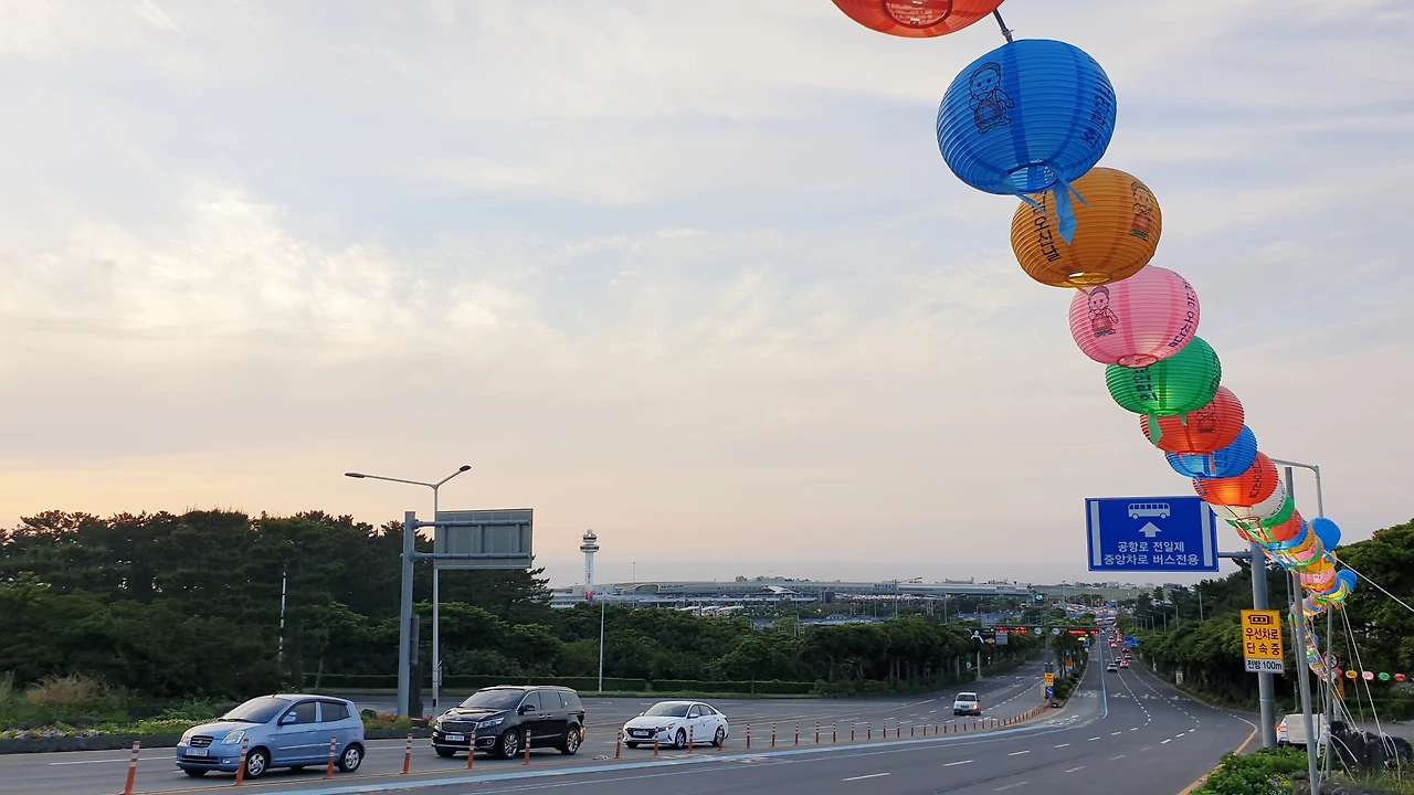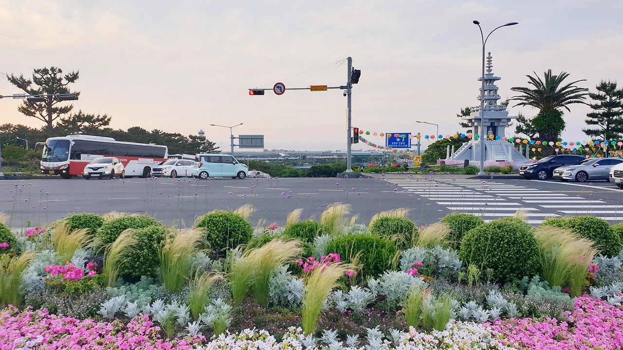 시속 50km로 달릴 땐 볼 수 없던 풍경도 눈에 든다. 지사님 납시는 길이라고 온갖 꽃들이 수놓고, 어린 시절 음악 교과서에서나 배우던 보리밭이 펼쳐지기도 한다. 베적삼 적시는 아낙네는 없지만 콩밭도 정겹게 늘어졌다. 신제주입구 교차로에는 부처님 오신날이라고 걸린 알록달록 연등 행렬이 수평선과 어우러진다.