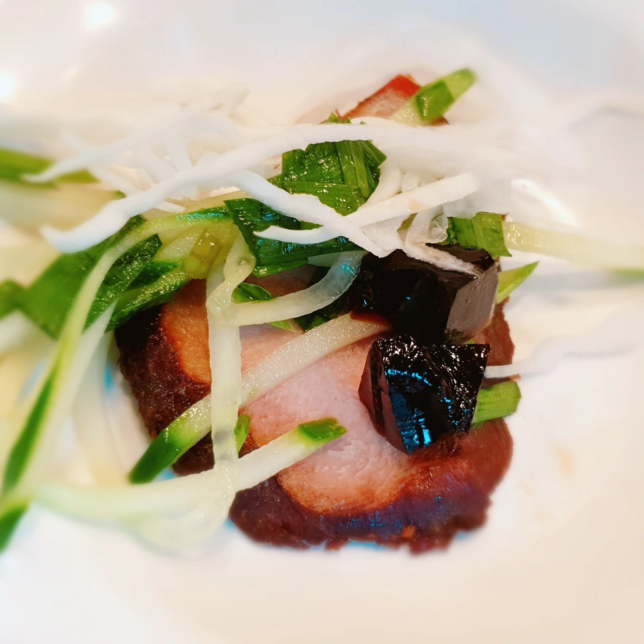 영등포 대문점 오향장육은 연태고량주 최고의 러닝메이트다. 간이 세지 않은 부추간장소스를 고양이 세수하듯 살짝 얹고, 오이, 짠슬과 함께 입에 넣으면 장육의 담백한 풍미가 손을 슥 뻗어 영혼을 진정시키는 기분이다. 거기에 차게 식힌 연태 한 방울을 흘려주면 잔잔한 혀끝에서 과일향의 꽃이 핀다. 장육이 마음을 정돈시킨 건 연태의 추진력을 얻기 위함이었다.