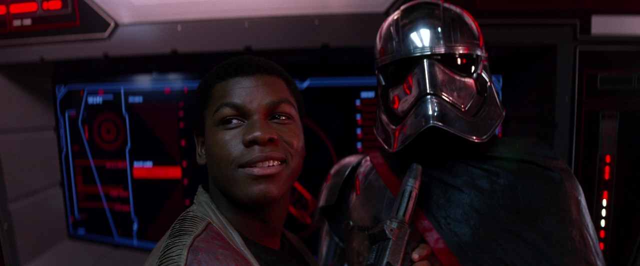 4. 헉스 장군과 파스마 대위가 핀의 탈영에 대해 얘기하는 부분에 약간의 연속성 오류가 있는데, 첫 번째 장면의 앵글이 바뀌기 직전에 헉스가 갑자기 왼쪽을 바라본다. 왜냐하면 원래 헉스가 카일로 렌을 바라보고 있었어야 했기 때문이다. 하지만, 장면이 이리저리 옮겨다니면서 카일로 렌의 개입(“아니면 클론 부대라도 투입해야 하나?”)이 훨씬 나중에 이루어졌고, 이 과정에서 오류가 생겼다.