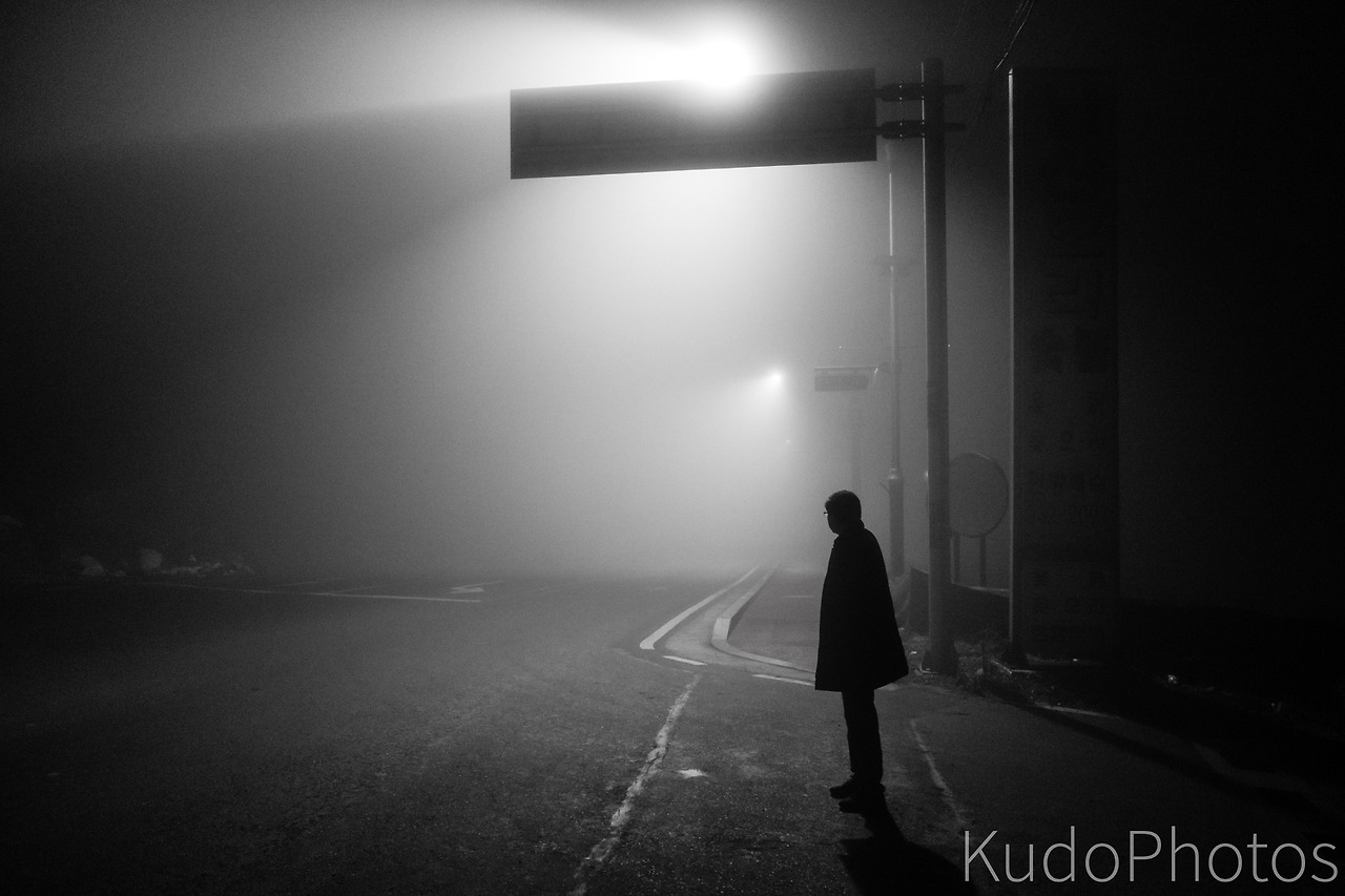 올해 신정 때는 강화도로 여행을 다녀왔다. 아버지도 병원을 하루 쉬셨고, 나도 월차를 내서 다녀왔다. 마지막 날에 동네 영화관에서 셜록 스페셜을 보고 돌아오는 길에 안개가 자욱하게 꼈다. 힘겹게 운전을 해서 숙소로 돌아온 직후, 나는 카메라를 꺼내 들고 이 안개를 사진으로 담아보겠다며 나갔다. 그 날 사진을 꽤 찍긴 했지만, 안개를 바라보는 아버지를 배경으로 찍은 이 사진이 가장 마음에 들게 나왔다.