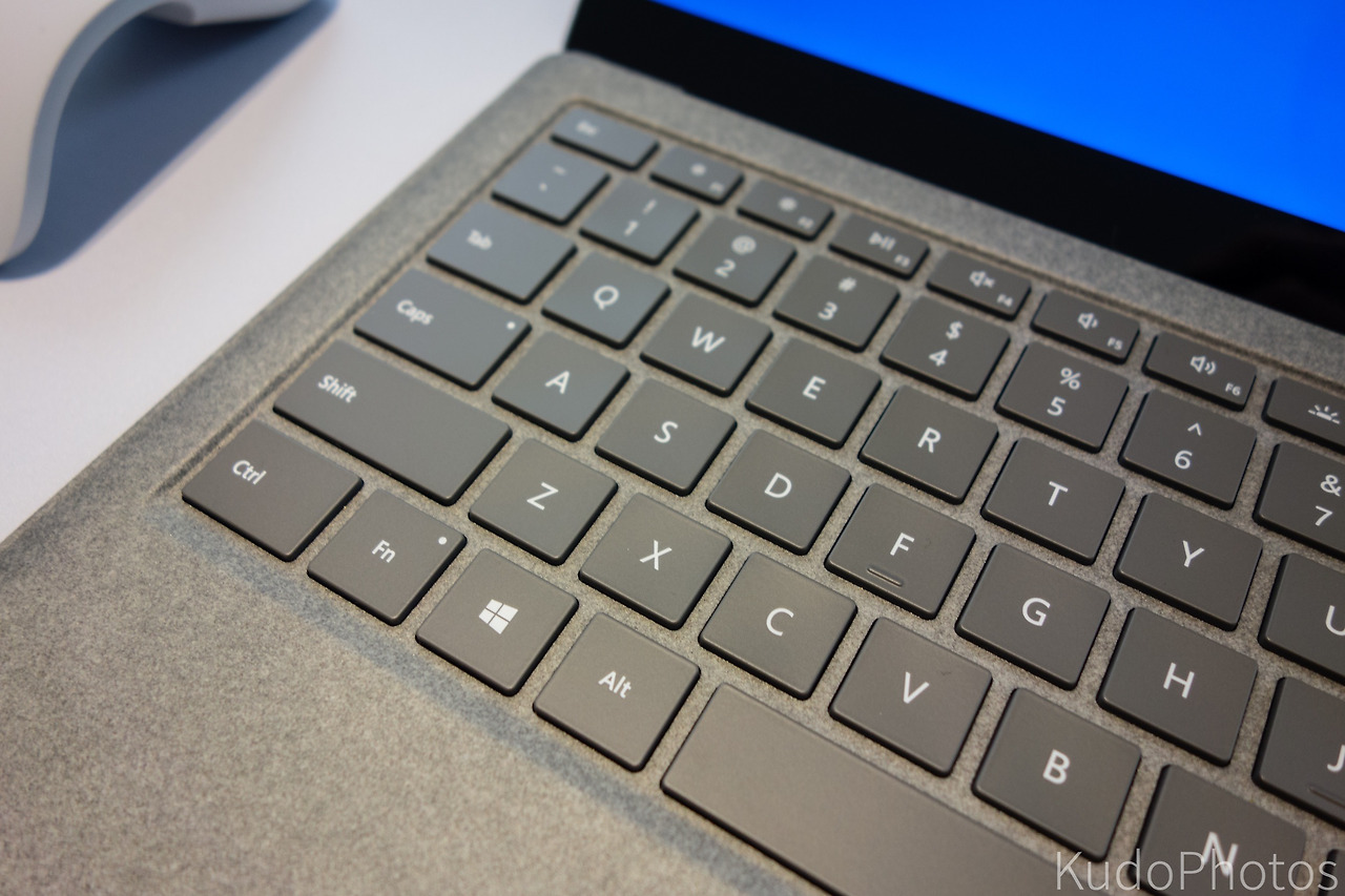 알칸타라 가죽으로 덮은 하판 부분은 특히 인상적인데, 키보드를 사용할 때 촉감이 상당히 좋았다. 차가운 알루미늄의 맥북 프로와 다르게 따뜻한 느낌이랄까. 떼가 타지 않을까 걱정된다면 알칸타라의 재질 자체가 떼가 잘 안 타는 재질이니 걱정하지 않아도 좋을 거 같다. 키보드도 맥북 프로만큼의 쫀득함은 없지만 깊이는 훨씬 좋은 편이었다.