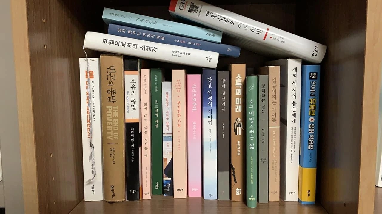 최근에 사서 읽지 못한 책들을 책장 한 칸에 몰아놓았다. 펴보지도 못한, 읽다만 책들이 쌓이는데도 사고 싶은 책은 더 빠른 속도로 장바구니에 쌓인다.