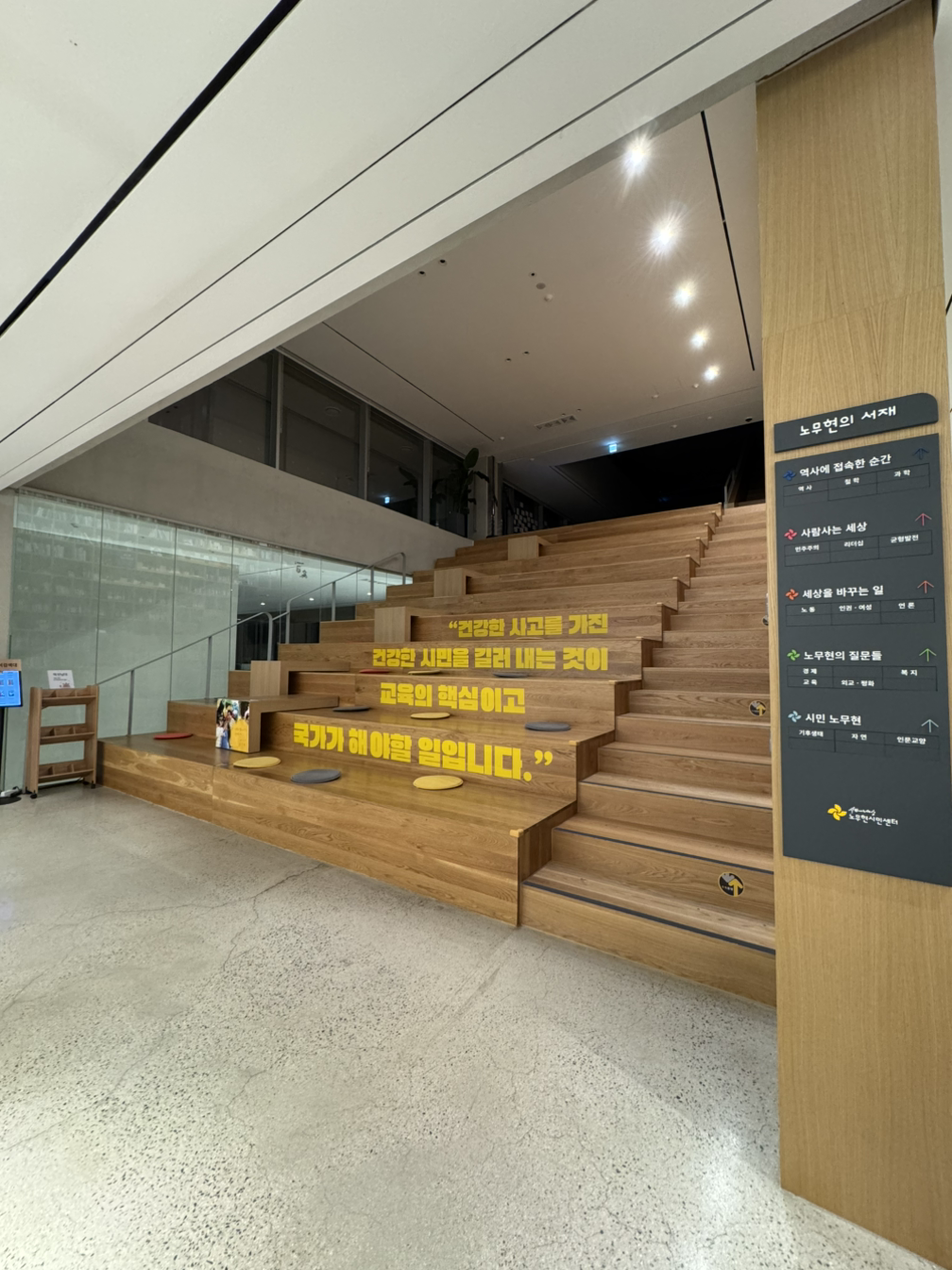 노무현 재단 건물에서 이뤄진 강의. 그가 생전 했던 말이 곳곳에 적힌 멋스러운 건물에서 나의 스승 어딘의 강의를 듣는 일은 행복하고 또 행복했다. 함께 글을 쓰는 동료들도 와 어딘의 이야길 같이 들었는데, 3년 간 글쓰기 수업을 하며 주 1회 매주 그의 이야길 들었어도 그의 이야기는 마르지 않는 샘 같았다. 즐거웠고 가득찼다.