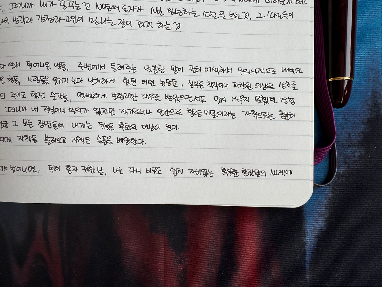 타인을 향한 애틋함을 잃지 않기 위해 문학을 한다는 그가, 정작 자신에게 애틋할 수 없음을 절망하고 다시금 그것을 문장에서 자신에게로 가져오기 위해 애쓰는 모습이 여느 사람들과 닮아있어서 다행이었다. 사람이라는 것은 다 비슷하구나, 자신을 싫어하고 특히 누군가에게 상처주고 아프게 한, 나 혼자 잘난 듯 굴었던 그 시간을 되돌리고 싶어하는 구나. 그렇게 자기를 되돌아보고 남을 아프게 했을 지도 모르는 사실로 인해 자기를 미워하는 사람들. 그런 사람의 존재가 이토록 마음이 벅찰 줄이야.