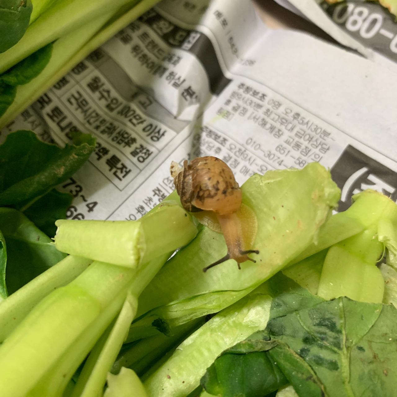 현충일이었다. 첫 자취를 시작한 내가 밥이나 제대로 챙겨 먹을지 걱정하셨던 할머니, 할아버지께서 시골에서 직접 기르신 상추와 고추를 비롯한 이름 모를 쌈채소들을 박스가 터지도록 보냈던 것이. 감사함과 피로함을 함께 느끼며 퇴근 후 내내 채소를 다듬다 등껍질이 반쯤은 깨진 달팽이가 상추 끝에 매달려 있는 것을 발견하고 난 어쩔 수 없이 기르기로 했다. 그대로 방생했다간 반나절도 못돼 죽어버릴 것이 분명했으므로.