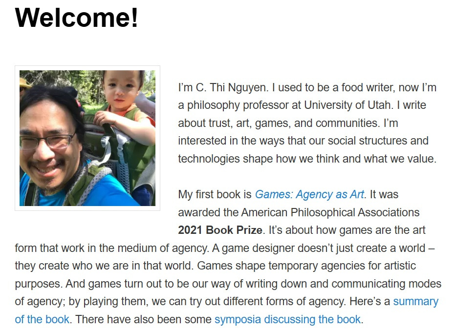 미국 유타 대학교 철학 교수인 C. Thi Nguyen이라는 분의 글이다.