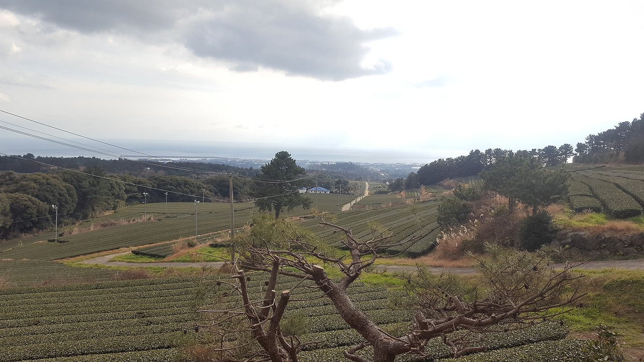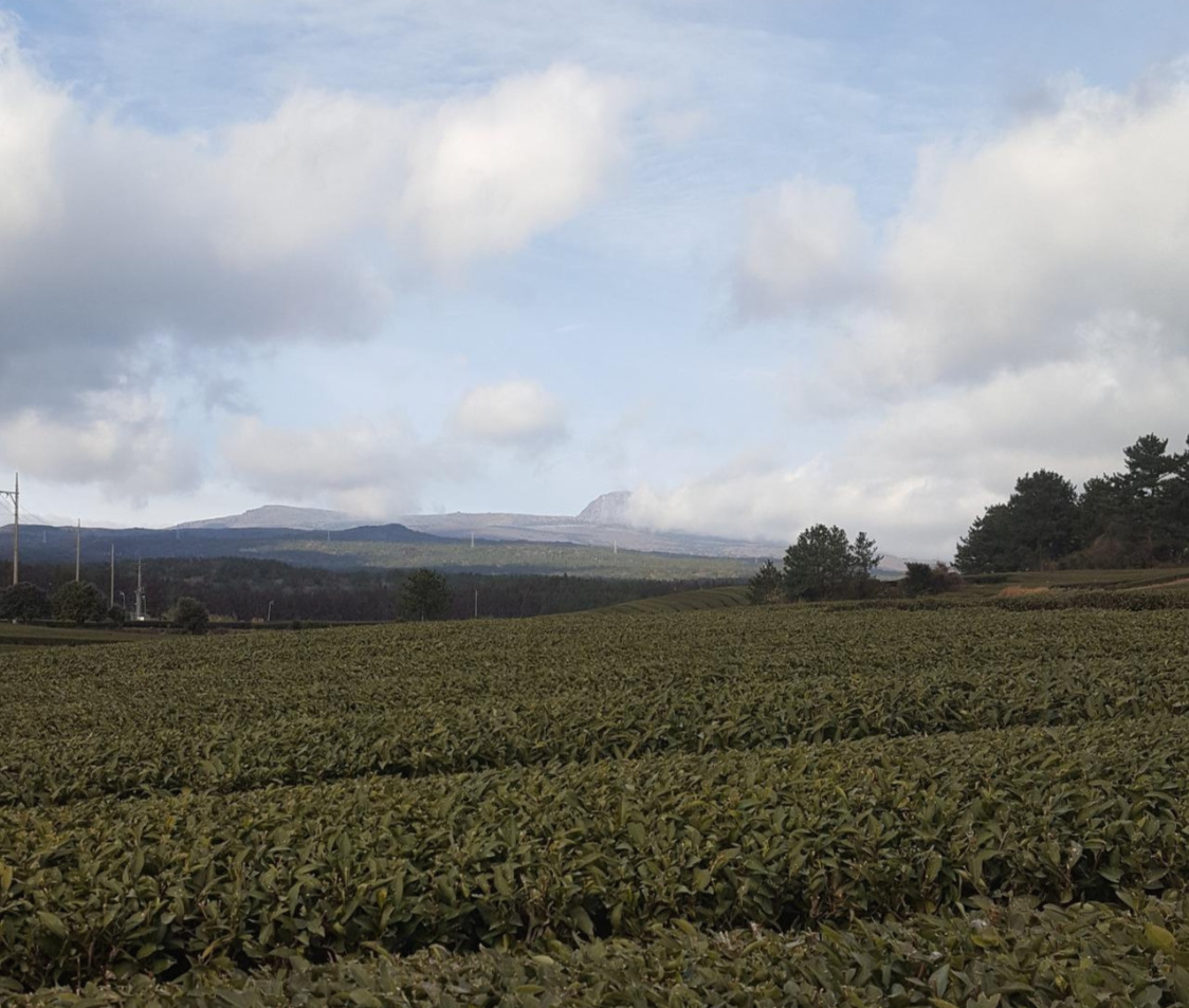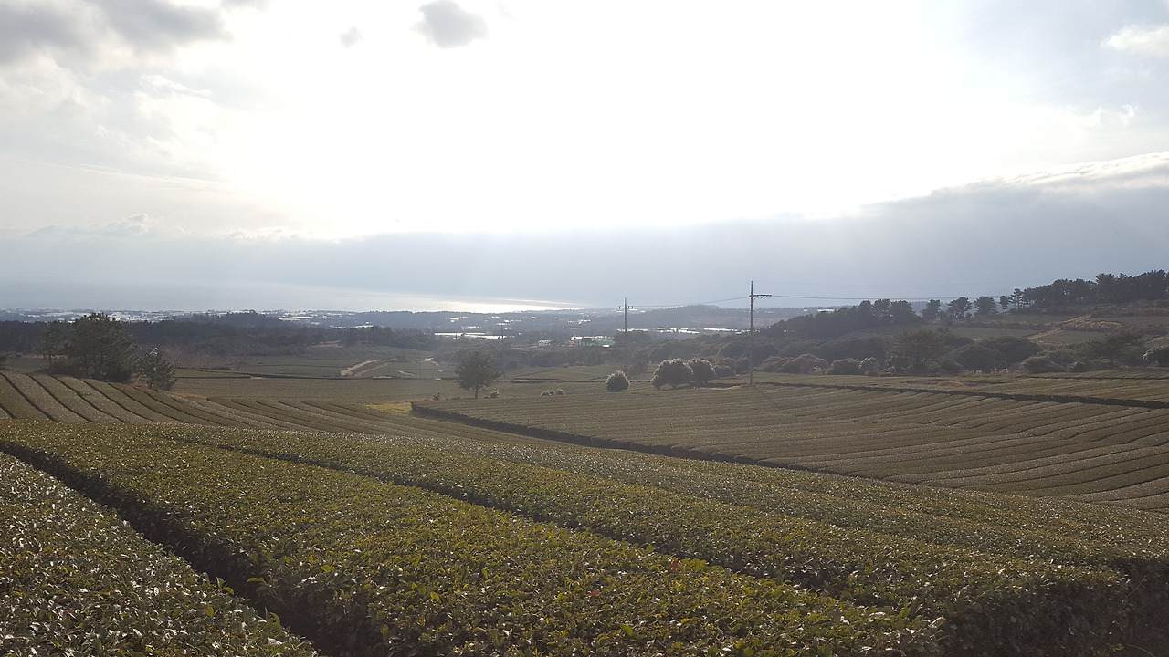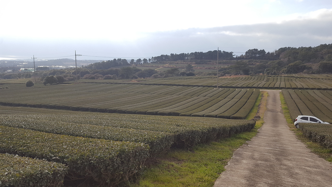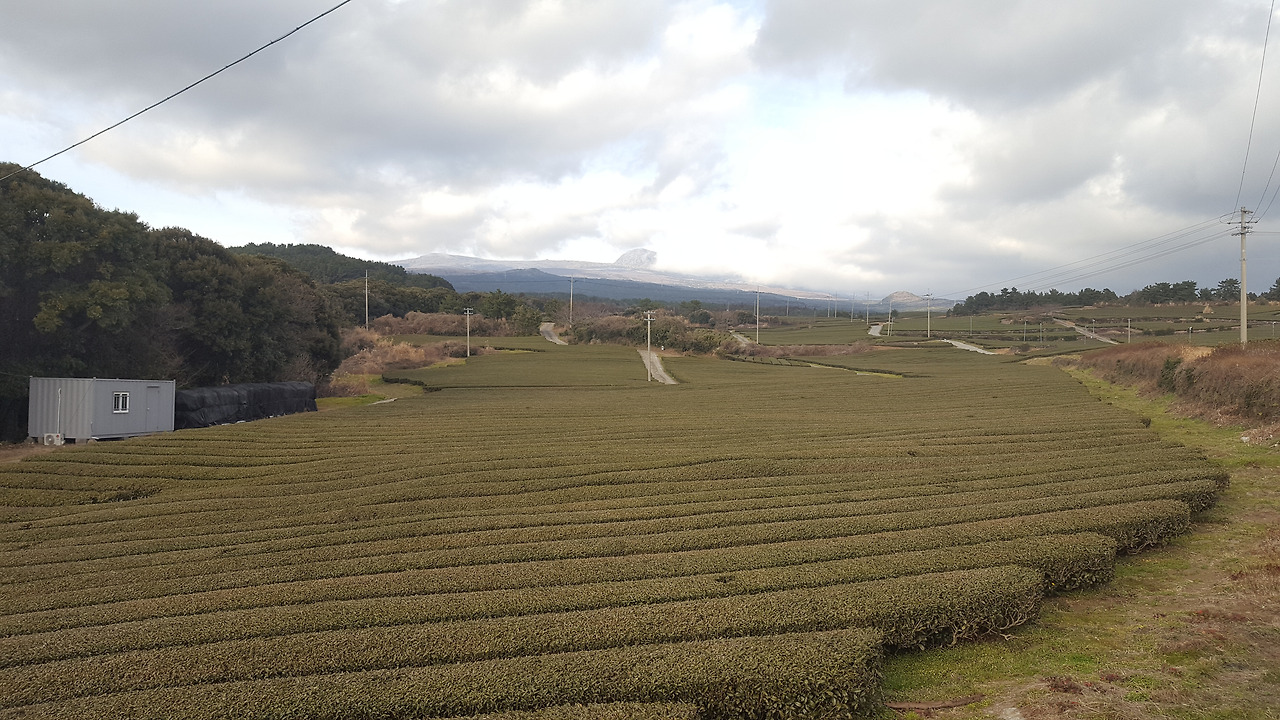 협재에서 중문 관광단지로 가는 길목에 사람들에게도 익숙한 오설록 티 뮤지엄이 있다. 그 앞을 지나가면서 얼핏 보기만 해도 주차장에 가득한 차량들로 사람들이 미어터지는 게 느껴진다. 그런데 그 바로 옆 동네로 시선을 조금만 돌려보면 한라산을 배경 삼아 푸른 녹차밭이 펼쳐진 도순다원이라는 곳이 있다. 이곳은 오설록 티 뮤지엄처럼 앉아서 쉴 수 있는 카페나 관광객을 위한 편의시설은 전혀 없으나 그런 한가함과 꾸미지 않음이 이곳의 매력이다.