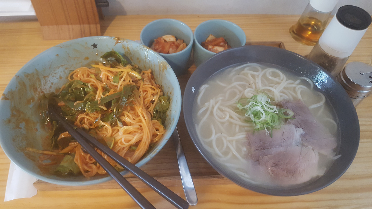 비빔국수와 고기국수를 모두 먹어보고 싶다면 혼자서 두개를 시켜먹을 수 밖에 없다.