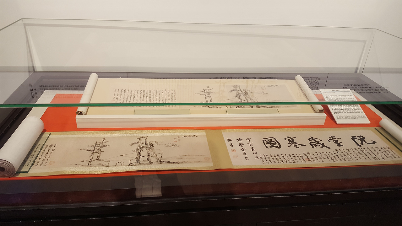 이상적은 이 세한도 들고 연경(당시 청의 수도, 지금의 베이징)에 가서 청나라 명사 16명의 제(題), 찬(贊)(지금으로 말하면 그림에 댓글을 달아준 것이다)을 받아서 돌아오고 여기에 근현대사를 거치며 정인보 등의 명사가 글을 덧붙여 지금의 세한도가 완성된다. 그래서 세한도는 그림 한 장이 아니라 세한도 그림과 발문 옆으로 명사들의 글이 주욱 덧붙여져 있는 하나의 커다란 두루마리 형태로 이루어져 있다.