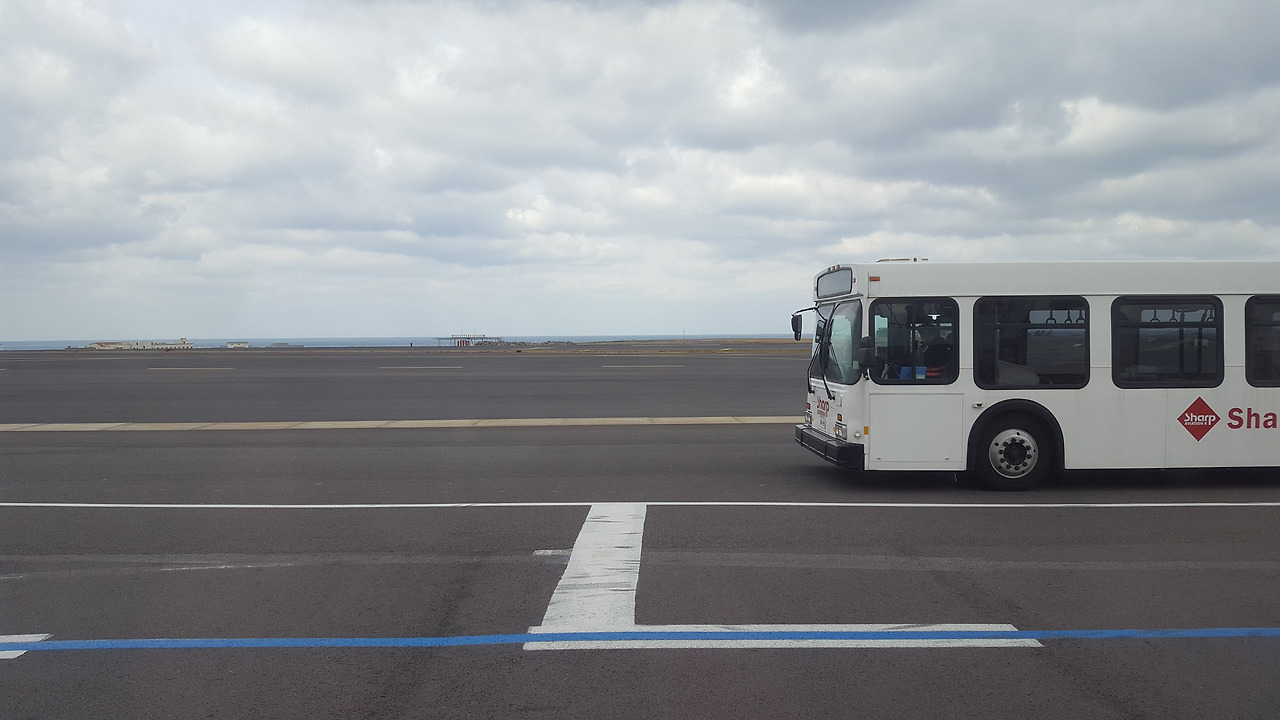 그런데 한 번은 익숙한 풍경이 낯설게 느껴질 때 가 있는 법이다. 제주공항은 바다에 인접해 있기 때문에 비행기에서 내려 바다 쪽을 바라보면 시야가 뻥 뚫려 있고, 아래의 사진으로는 잘 안 보이지만 저 멀리 바다가 눈에 들어온다. 남국의 파란 하늘도 아니었는데 이날은 흐린 하늘 속 저 멀리 바다의 풍경이 매우 낯설게 느껴졌다. 그 말은 곧 진짜 여행을 온 것 같았다. 그렇게 나는 같은 제주에서 매번 새로움을 느낀다
