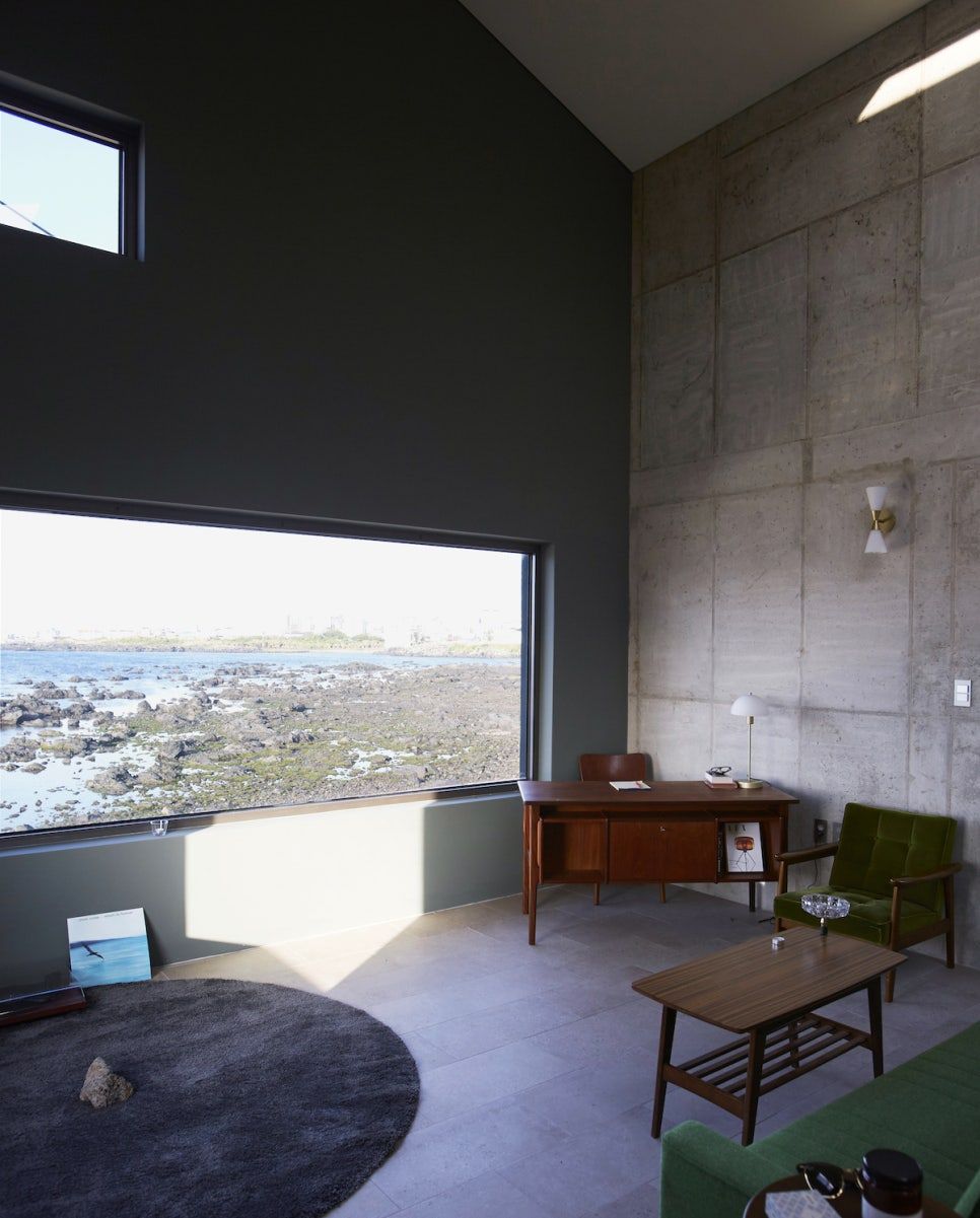 첫째는 ‘제주다울 것’, ‘헤이리나 판교의 근사한 단독주택과 다른 제주의 기운을 품을 것’이었어요. 다행히 건축사무소의 이창규 소장은 제주 토박이 출신이어서 제 말뜻을 잘 이해해 주셨죠. 슬로보트의 외관이 검은 이유는 제주도 현무암의 검정을 모티프로 삼았기 때문이고요.