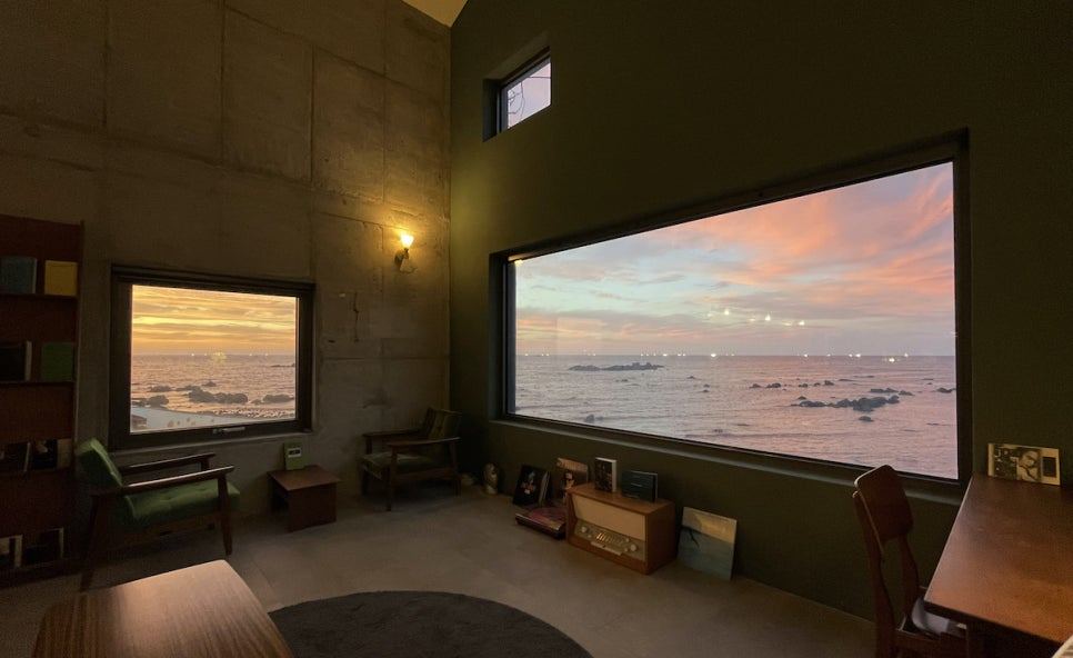 2층 창밖의 바다는 언제나 옳아요. 나무는 알아차리지 못하는 속도로 서서히 변하고 물은 지속해서 대놓고 변하는데요. 저는 한 번도 같은 바다와 파도의 운율을 보지 못했어요. 질릴 겨를이 없죠. 한치 잡이 배가 뜨는 5월부터 7월까지의 애월의 밤, 슬로보트의 밤은 말해 무엇합니까.