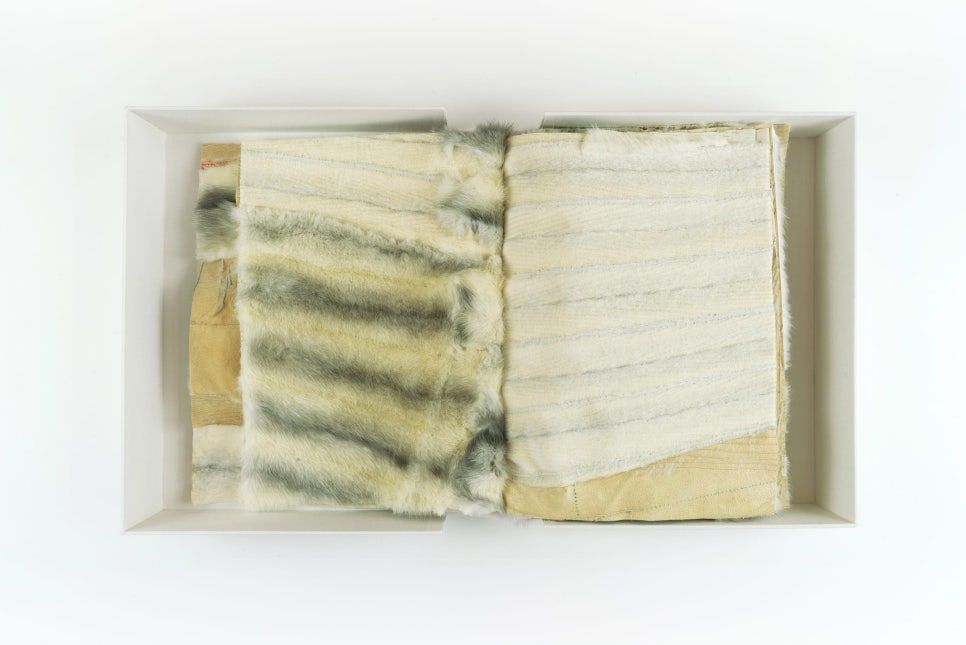 최근 갤러리현대에서 개인전을 성공적으로 마친 사이먼 후지와라는 퍼포먼스, 영화, 설치, 조각, 텍스트 등 다양한 분야를 아우르는 작가이다. 작가는 일본인 아버지를 둔 영국인으로서의 정체성 때문에 인종, 젠더 등의 정치적인 문제를 작품에 적극 끌어들인다. 이런 주제로 베니스 비엔날레를 비롯하여 카셀도큐멘타 등 세계적인 전시에 이름을 올렸다. 이번 <Fabulous Beasts> 시리즈는 베를린에서 생산된 모피 코트 한 벌로만 만들어졌다. 모피 코트는 재단 패턴에 따라 분해하고 여러 단계를 거쳐 털이 깎이게 되는데, 이를 통해 우리는 제조업체 우표, 패치워크 디테일, 염색 자국과 피부병의 흔적, 생산자의 손 글씨 등을 찾아볼 수 있게 된다. 이 책은 그 가죽들을 다시 꿰매어 엮은 것이다. 사치를 위해 만들어졌던 모피 코트는 '읽을 수 있는' 책으로 변모하여 내러티브나 정보가 아니라 그 자체가 가진 비뚤어진 관능을 통해 직접적으로 우리에게 이야기를 전달한다.