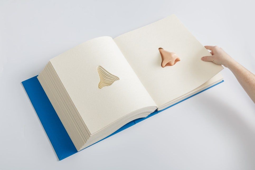 얼마 전 타개하여 전 세계인들이 안타까워한 미국을 대표하는 개념미술가이자 미술 교육자였던 존 발데사리는 그 누구보다 아티스트 북 출판물에 열정을 쏟은 작가다. 그는 1970년대 초부터 판화를 찍기 시작했으며, 자신이 가르치던 학생들과 함께 ‘더 이상 따분한 작품을 벽에 걸지 않겠다’는 슬로건 아래 출판물을 기획/간행해 역사에 남겼다. <Nose Peak>은 그가 작고하기 전에 마지막으로 남긴 아티스트 북이다. 12개의 에디션이 있지만, 각기 양장 등이 달라 유니크한 작품으로 이해되기도 한다. 현재 11권은 해외 주요 미술관 및 메가 컬렉터들에게 소장되어 있어 이제 한 점만 남은 이 작품은 제목 그대로 사람의 코(정확히는 러시아의 문학가 니콜라이 고골의 코)를 책 속에 산처럼 배치한 작품으로, 책을 넘김으로써 코의 형태가 점점 드러나는 형태를 지닌다.