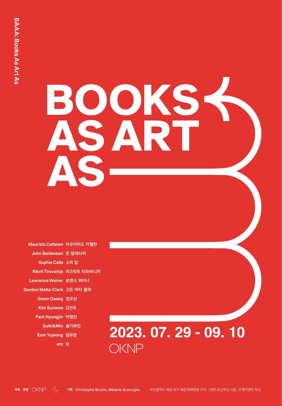 화집, 도록, 레조네, 아트북 등 미술과 관련된 책은 무수히 많다. 각기 다른 뜻을 가지고 있고 용도에 맞게 특정한 양식과 형식을 가지고 있다. 그리고 여기에 더 해 한국에서는 다소 생소한 영역이지만, ‘아티스트 북Artists’ Books’이라 불리는 장르 또한 있다. 직역하자면 ‘미술가의 책’이라 할 수 있는 이 장르는 간략히 이야기하자면 ‘작가의 손에 의해 만들어진 책의 형태를 갖춘 예술 작품’이라 할 수 있다. 오케이앤피 부산에서 열리는 전시 《BAAA: Books as Art as》는 이 아티스트 북에 관한 전시이다.