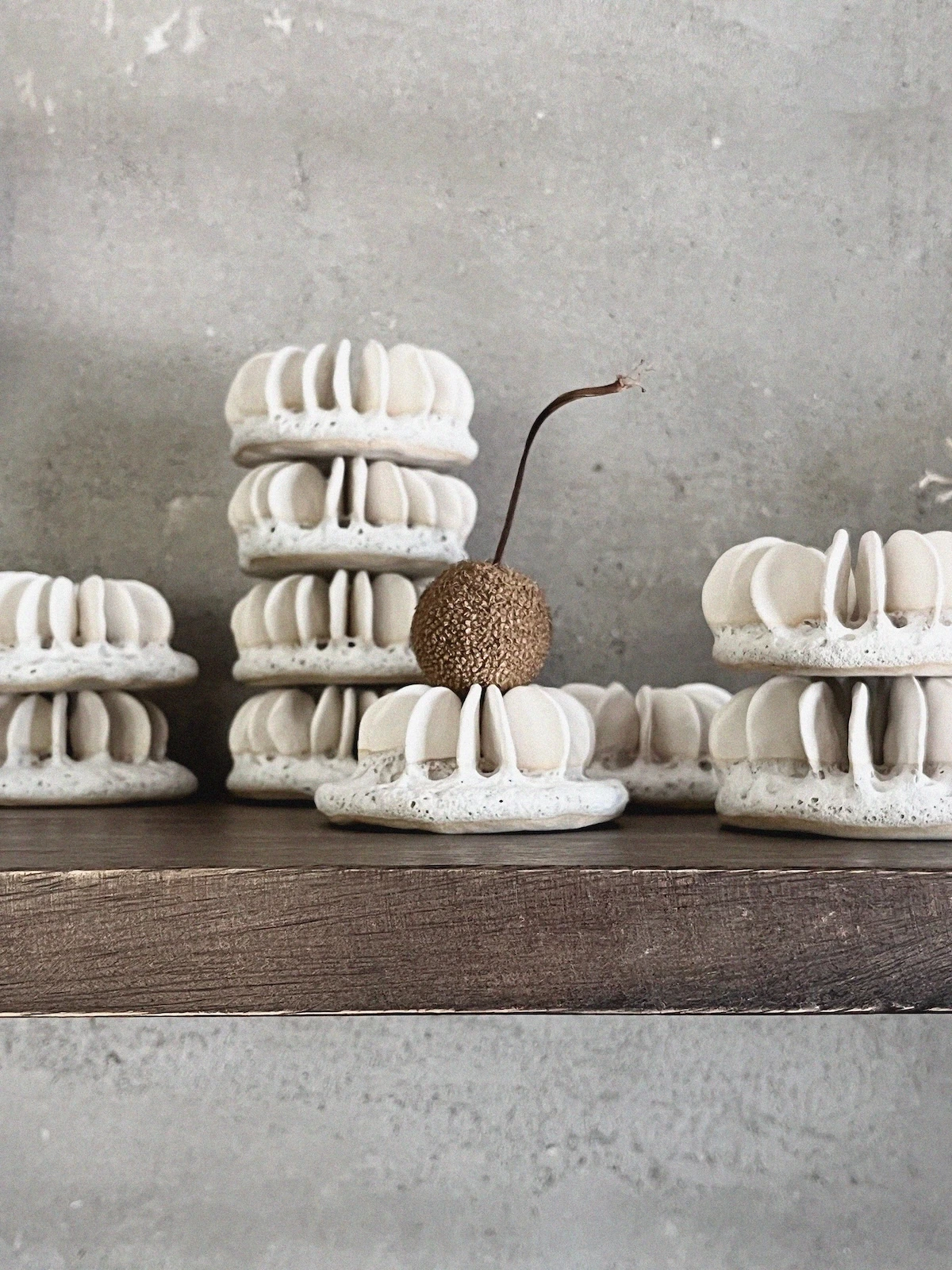 정해진 용도가 없는 사물들을 좋아하는 편입니다. 정해진 용도가 없다는 건 쓸모 없다는 말이기도 하지만 무엇이든 될 수 있다는 말이기도 하거든요. 히읗의 세계를 운영하는 강신영 작가의 ‘Montblanc holder’는 큐에서 오랫동안 소개하고 있는 도자기 오브제인데요. 촛대나 인센스 홀더로 가장 많이 쓰이지만, 구매자 분들이 공유해 주는 사진을 보니 플로어리스트에겐 꽃을 꽂는 침봉 역할을, 상점에서는 명함 스탠드로 사용되고 있더라고요. 열매나 과일을 올려 두는 색다른 테이블 웨어로 쓰이기도 하고요. 생활에 따라 쓰임이 달라지는 Montblanc holder처럼 용도를 알 수 없지만 다양하게 쓰일 수 있는 사물들을 발견하고 소개하려 합니다.