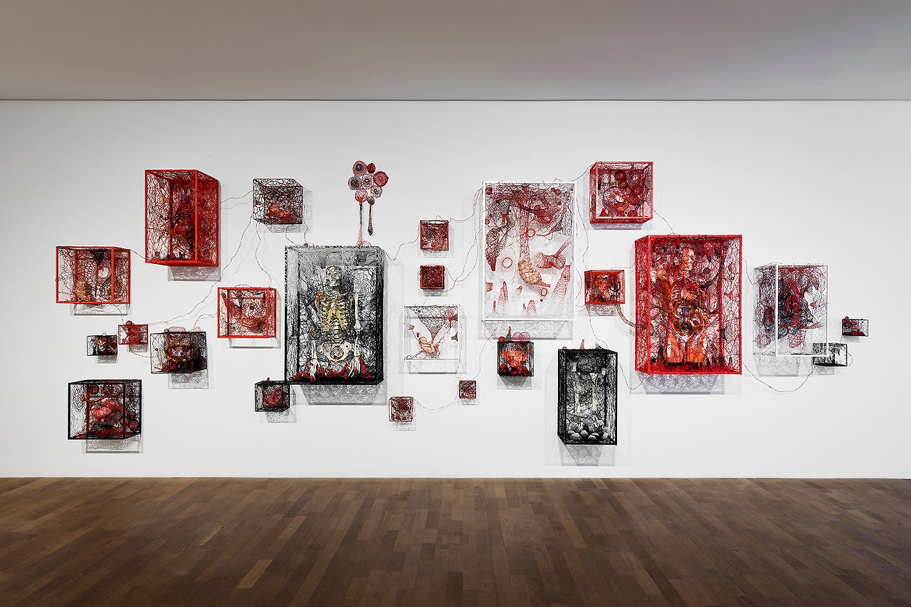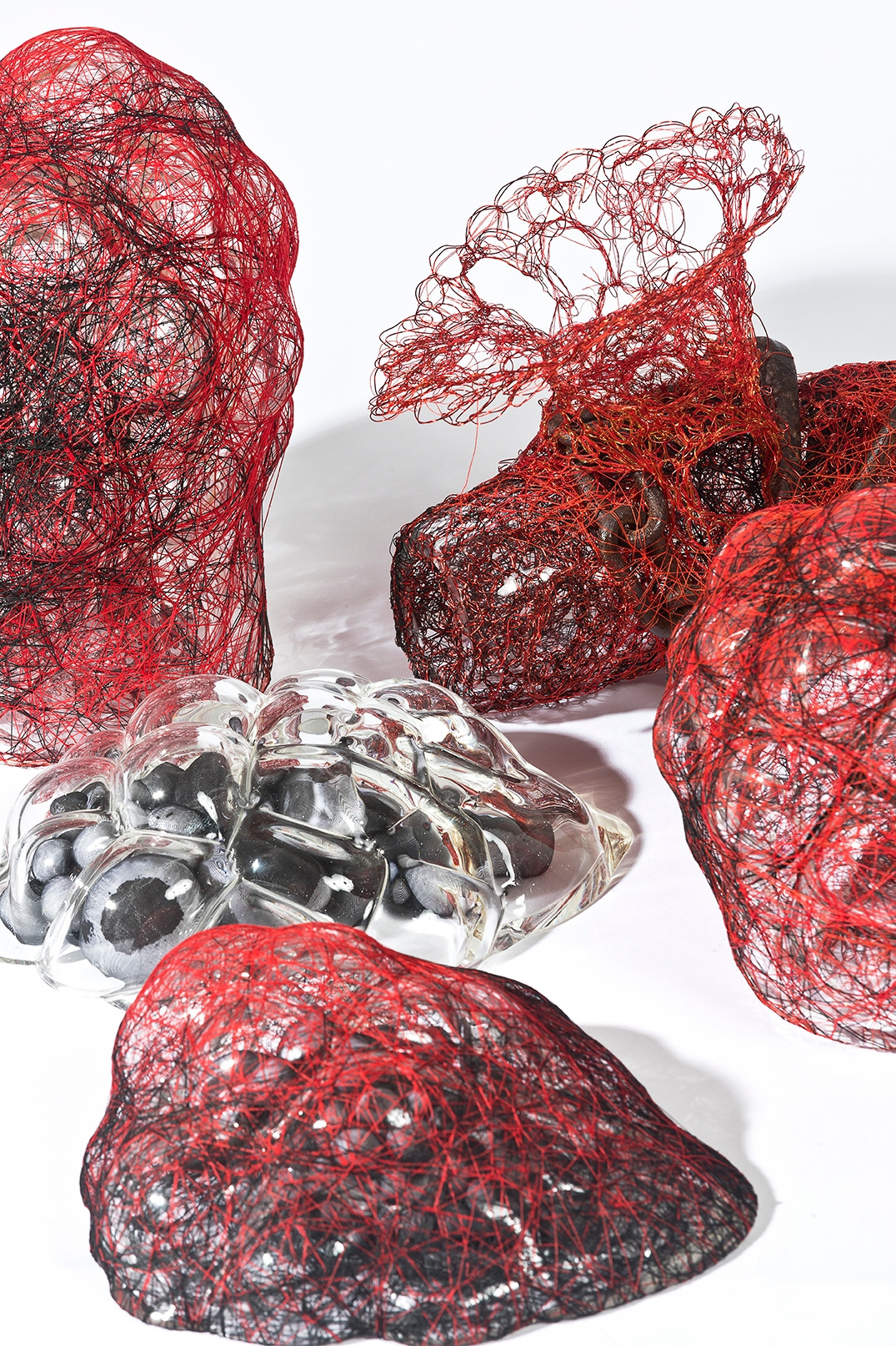 작가의 신작들은 고통의 체험을 직접적으로 반영한다. <Cell>(2024–2025) 연작은 유리와 철사로 구성된 세포 구조를 형상화한다. 유리는 깨지기 쉬우면서도 열과 압력에 의해 새로운 형태로 재탄생한다. 이 속성은 투병의 경험을 은유하며 연약함과 회복 가능성이 공존한다는 사실을 드러낸다. 작가는 “내 몸은 자연과 분리된 것이 아니라 그 일부임을 의식하기 시작했다”고 고백한다. 또 다른 작품 <The Self in Others>(2024)는 해부학적 도판에서 출발해 단절된 신체 파편을 배치한 설치다. 육체가 해체되더라도 기억은 이어지고 타자와의 관계 속에서 자아가 재구성된다는 메시지를 전한다. 관람자는 파편화된 신체를 통해 오히려 인간 존재의 연속성과 확장을 떠올린다.