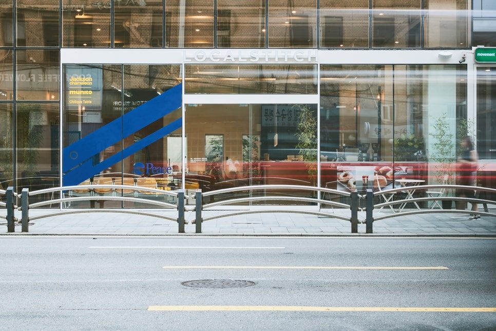 로컬스티치 지하 1층에서 총괄적인 전시가 진행되고 있으며, 1층은 로컬스티치 카페인 동시에 콜라보 가구와 사진들이 전시된다. 지하 1층 메인 전시장에 들어서는 순간, 가장 먼저 눈길을 끄는 것은 노란색 철제 프레임으로 특별히 제작된 전시 좌대와 벽면에 설치된 피스코리아 타임라인이다.