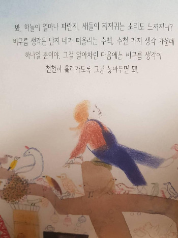 책이나 매체를 통해 많이 소개되고 있음에도 불구하고, 쉽게 다가오지 않을 수도 있습니다. <너의 마음은 하늘과 같아>라는 그림책을 통해서 무겁지 않게 접해보신다면 좋겠습니다. 따뜻한 색감의 그림도 마음을 편안하게 해주는 데에 한몫합니다.
