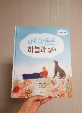 휴. 서론이 너무 길었습니다. 크고 작게 마음을 다루는 데에 어려움을 겪는 분들에게 추천하고 싶은 책이 있습니다. 타인을 할퀴는 혹은 무력한 아이에게 상처를 주는 그런 어른이 되지 않았으면 좋겠다는 마음을 담아 소개합니다. 마음 챙김 그림책인데요. <너의 마음은 하늘과 같아>라는 제목의 책입니다. 마음 챙김을 도와주는 그림책이에요.