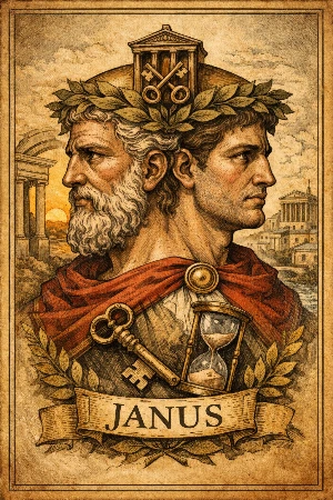 흥미로운 점은 앞뒤를 모두 볼 수 있는 야누스는 ‘경첩의 여신’인 카르나(Carna)를 아내로 맞이한다. 과거와 미래를 꿰뚫는 ‘통찰(야누스)’과 문을 단단히 지켜주는 ‘수호(카르나)’가 만났을 때, 그들 사이에서 태어난 존재는 다름 아닌 로마를 흐르는 ‘강물의 신(Tiberinus)’이었다.
