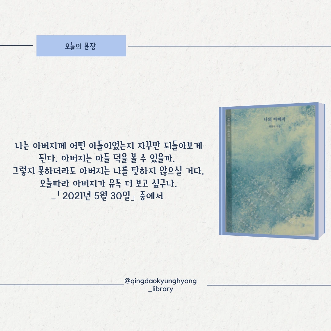 #나의아버지 #최원석작가 #최초딩 #독립출판물 #아버지 # 오늘의문장 #칭다오 #칭다오청양 #칭다오경향도서관