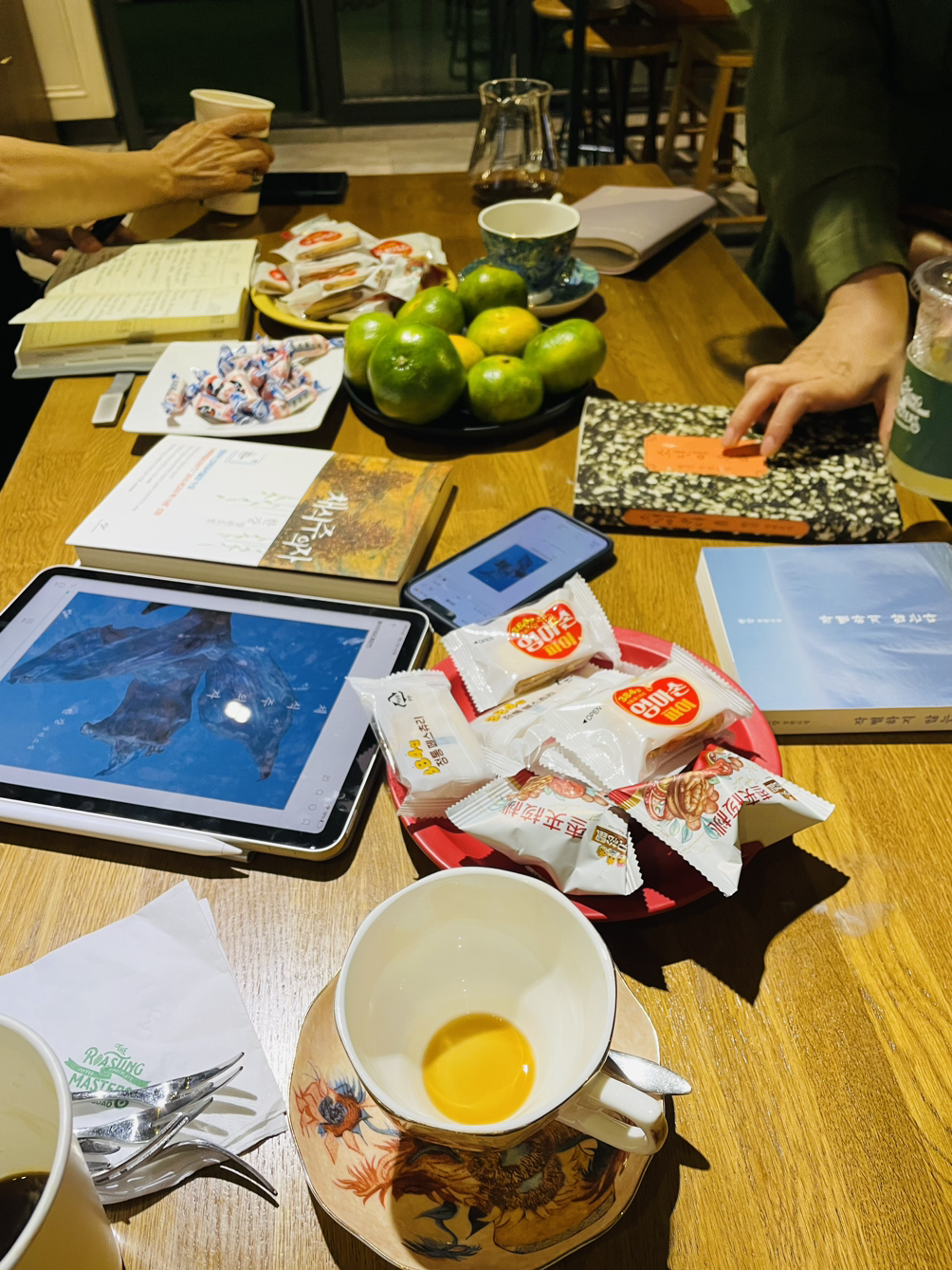 오늘은 심야 독서 모임을 쌤 님이 운영하는 카페에서 진행했습니다. 정성껏 준비해 주신 다과와 깊은 대화와 가을밤이 어우러진 시간이었습니다. 단희 님이 선정하신 지정 도서 한강 작가님의 『채식주의자』(창비, 2007)를 통해 인간이 가지고 있는 심연의 세계에 대해 이야기를 나눴습니다. 개인적으로 오늘은 미루고 미룬 숙제를 한꺼번에 정리한 날이라 조금 고된 상태로 참여했는데, 좋은 대화 덕분에 집중할 수 있었습니다.