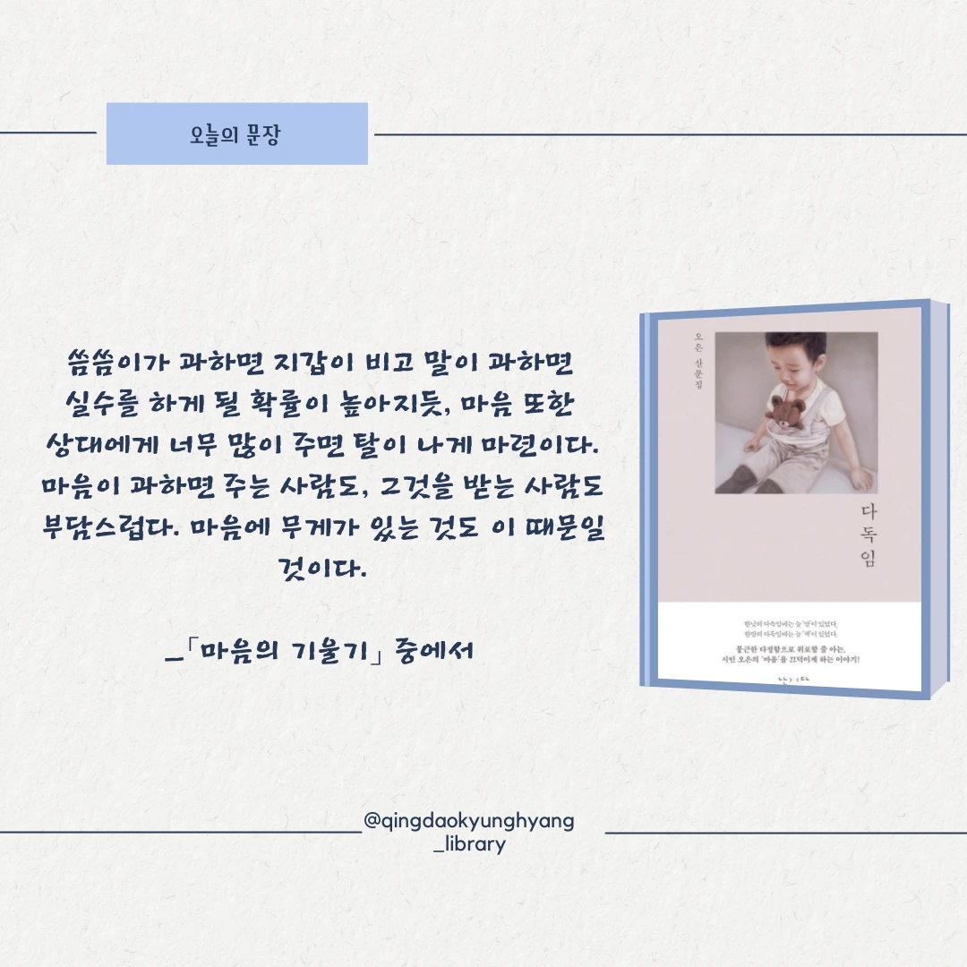 #다독임 #난다출판사 #오은시인 #마음 #오늘의문장 #칭다오 #칭다오청양 #칭다오경향도서관